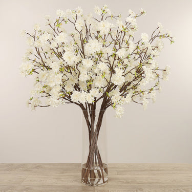 زهرة الكرز الاصطناعية في مزهرية زجاجية