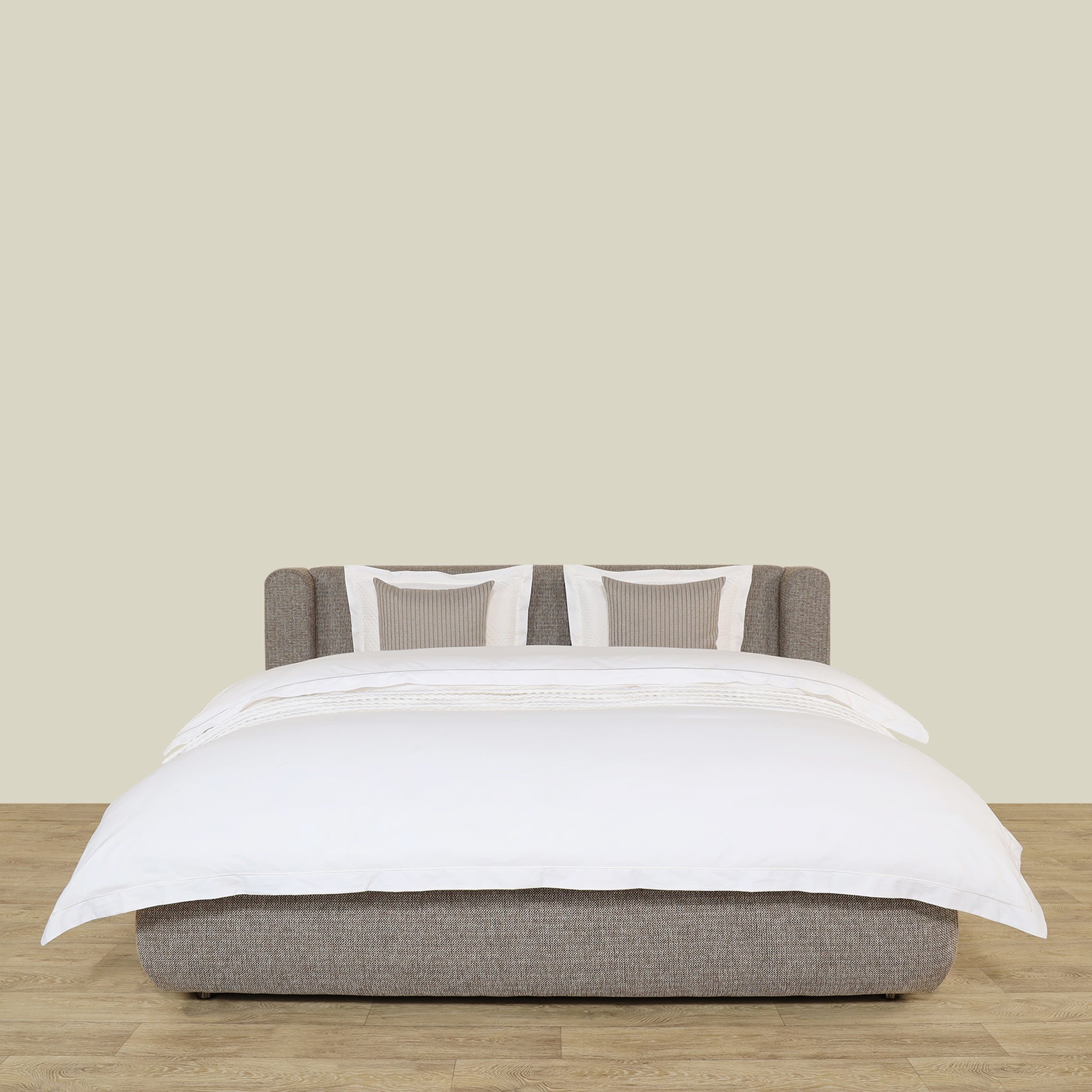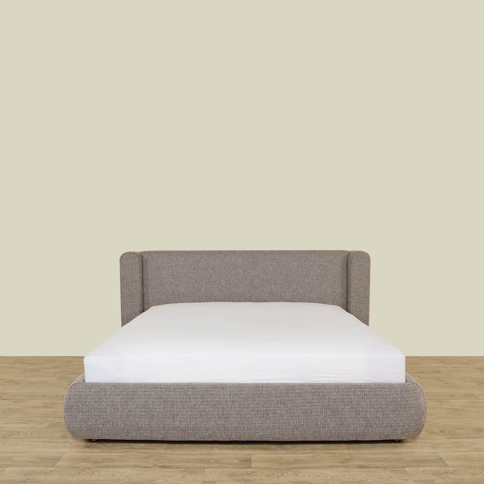 يتميز Bed Snug بإطار من الخشب الصلب يكمله نسيج رمادي أنيق، يمزج بين المتانة والجماليات الراقية.