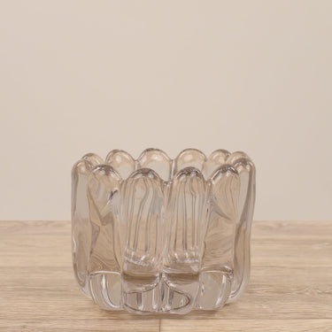 Discover understated luxury with this exquisite glass candle holder, designed to infuse your space with refined ambiance.