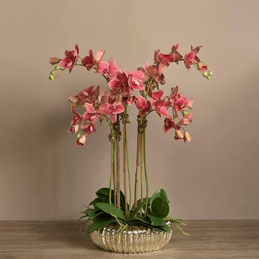حوّل أي مساحة معيشة إلى ملاذ هادئ مع ترتيب الأوركيد الجميل هذا. مصنوعة من بساتين الفاكهة الحريرية بلمسة حقيقية ، تبدو هذه الزهور حقيقية بشكل ملحوظ من البتلات إلى الجذور. يتكامل وعاءهم المعدني المعدني المزخرف بشكل جميل مع الأوراق الخضراء والأزهار البيضاء أو الوردية. الترتيب حجم المزهرية الحجم الارتفاع الارتفاع القطر صغير 66 سم / 26 بوصة 10 سم / 3.9 بوصة 29 سم / 11.4 بوصة كبير 74 سم / 29.1 بوصة 12 سم / 4.7 بوصة 29 سم / 11.4 بوصة