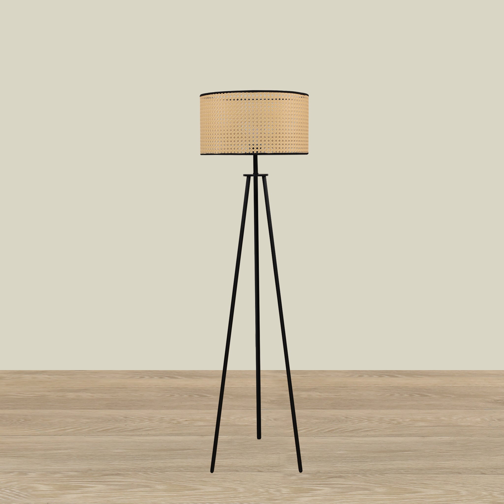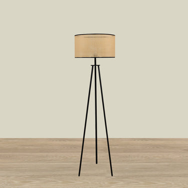 مصباح أرضي من خشب الراتان بمظهر طبيعي وناعم.
