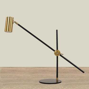 مصباح طاولة معدني بلمسة نهائية ذهبية دافئة ومظهر نظيف وعصري.