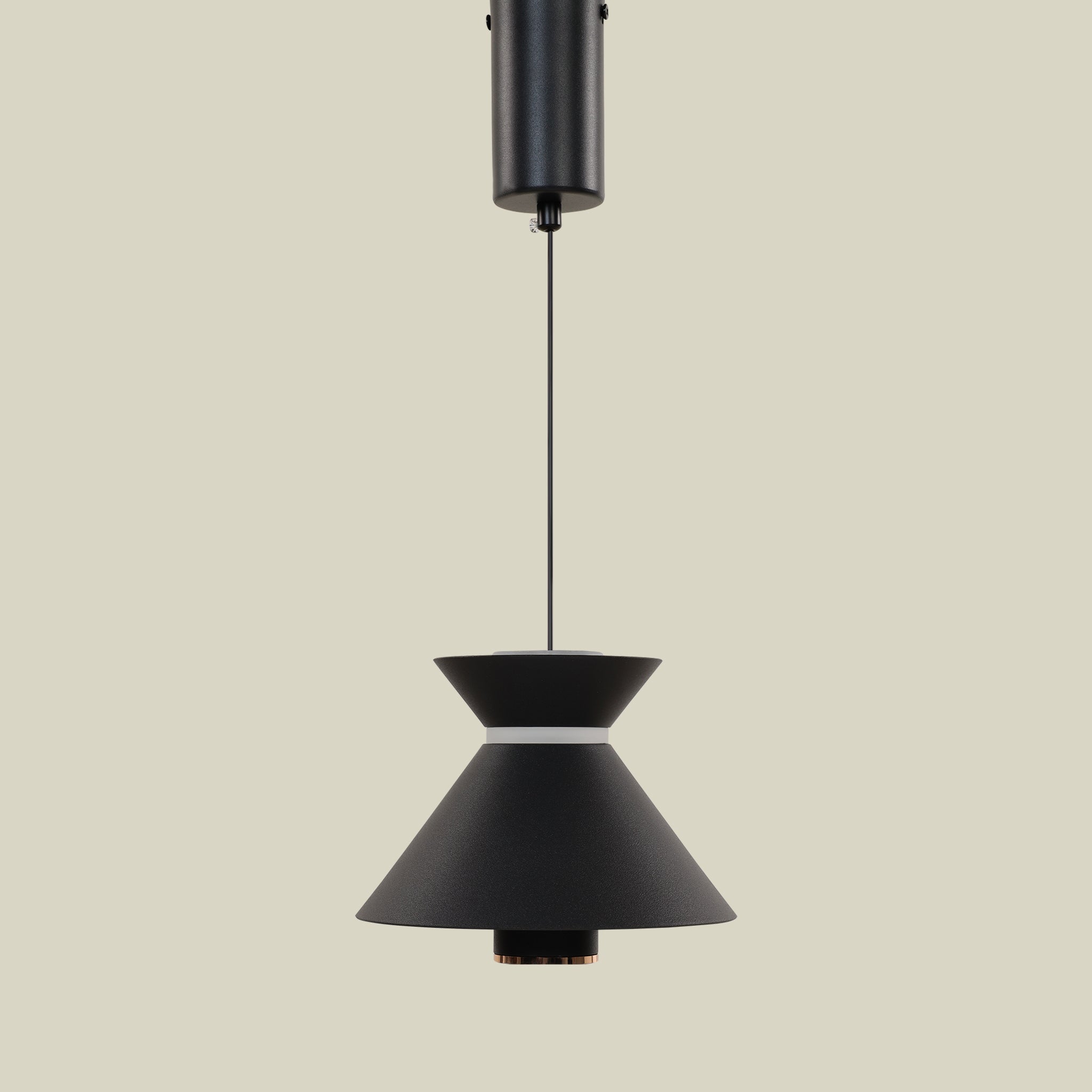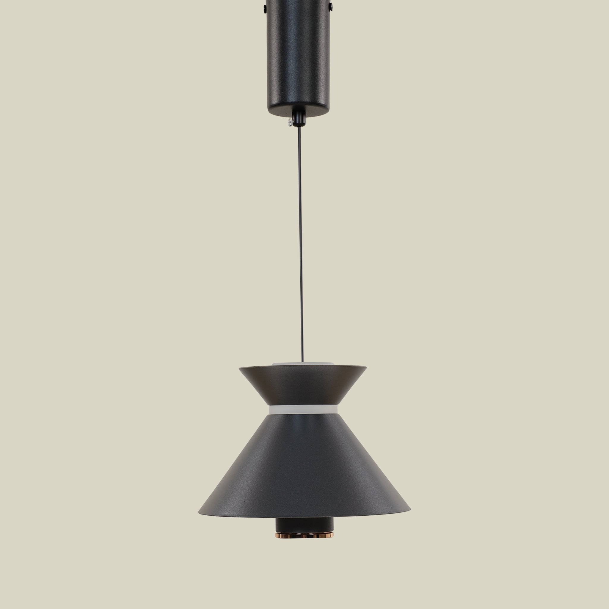 مصباح معلق أنيق مصنوع من الألمنيوم والأكريليك، مصمم لإضفاء لمسة عصرية وراقية على أي مساحة. تشمل المصابيح المتوهجة لتوفير حل إضاءة كامل وجاهز للتركيب.