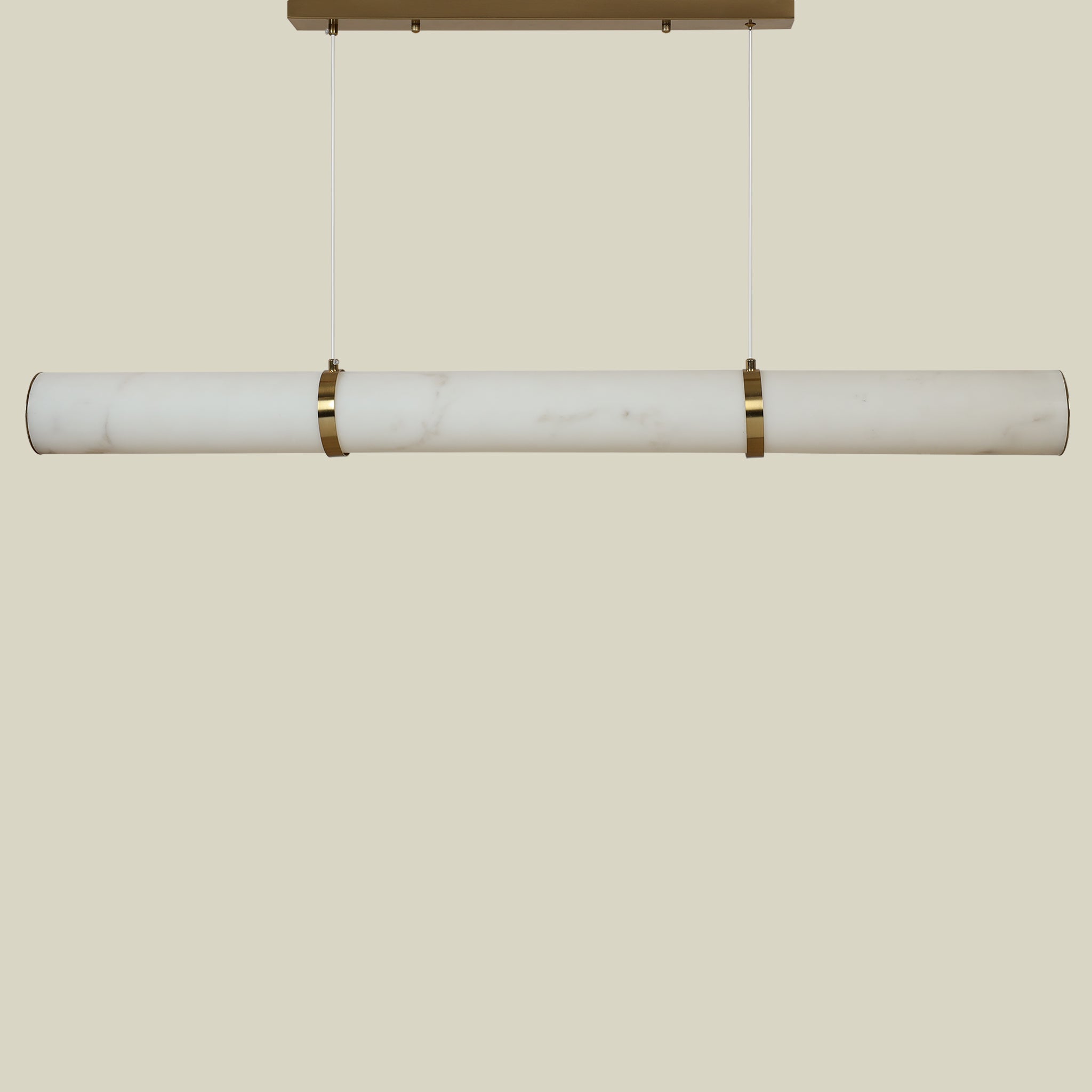 مصنوع من المعدن والألباستر، بلمسة نهائية نحاسية دافئة تتناسب بسهولة مع معظم المساحات.