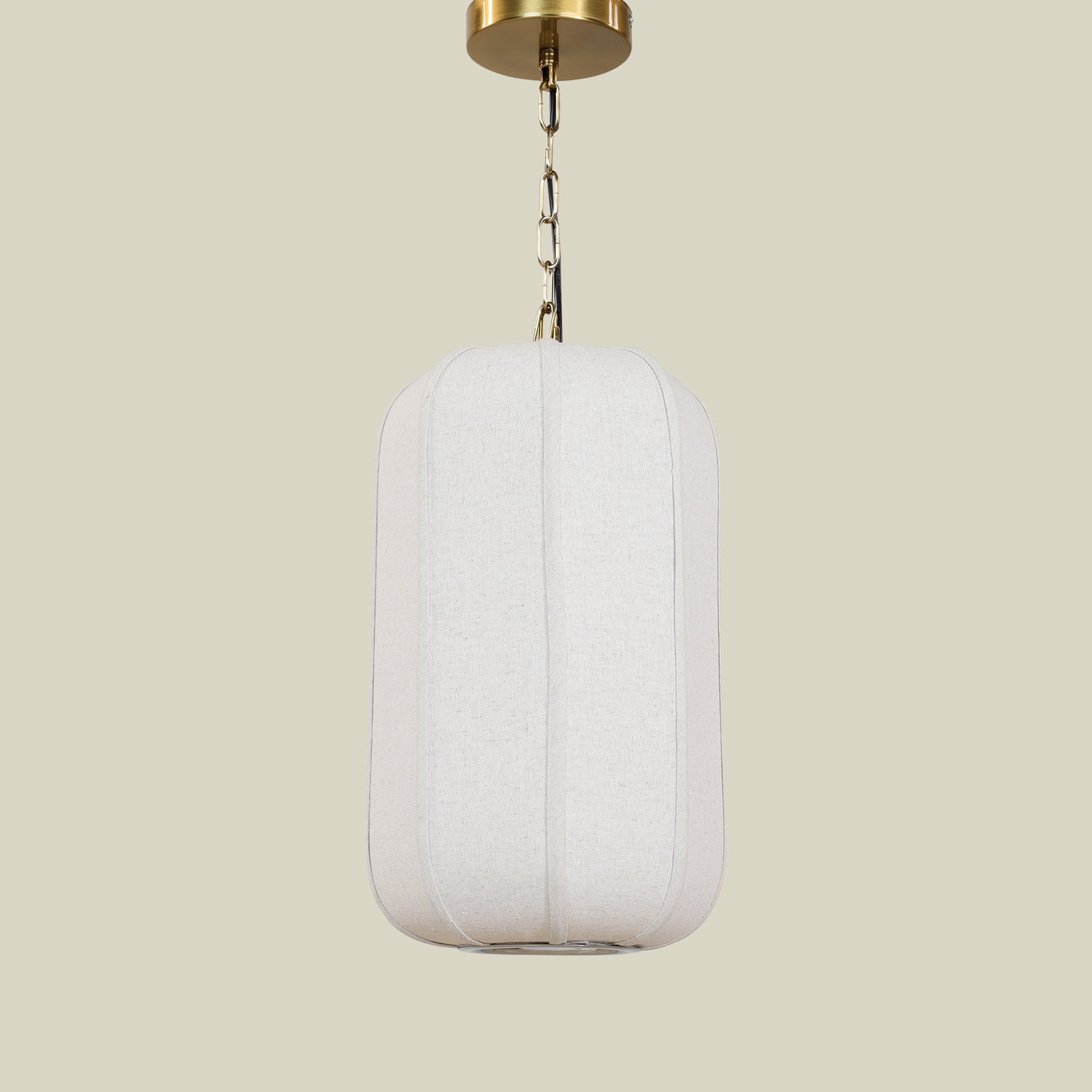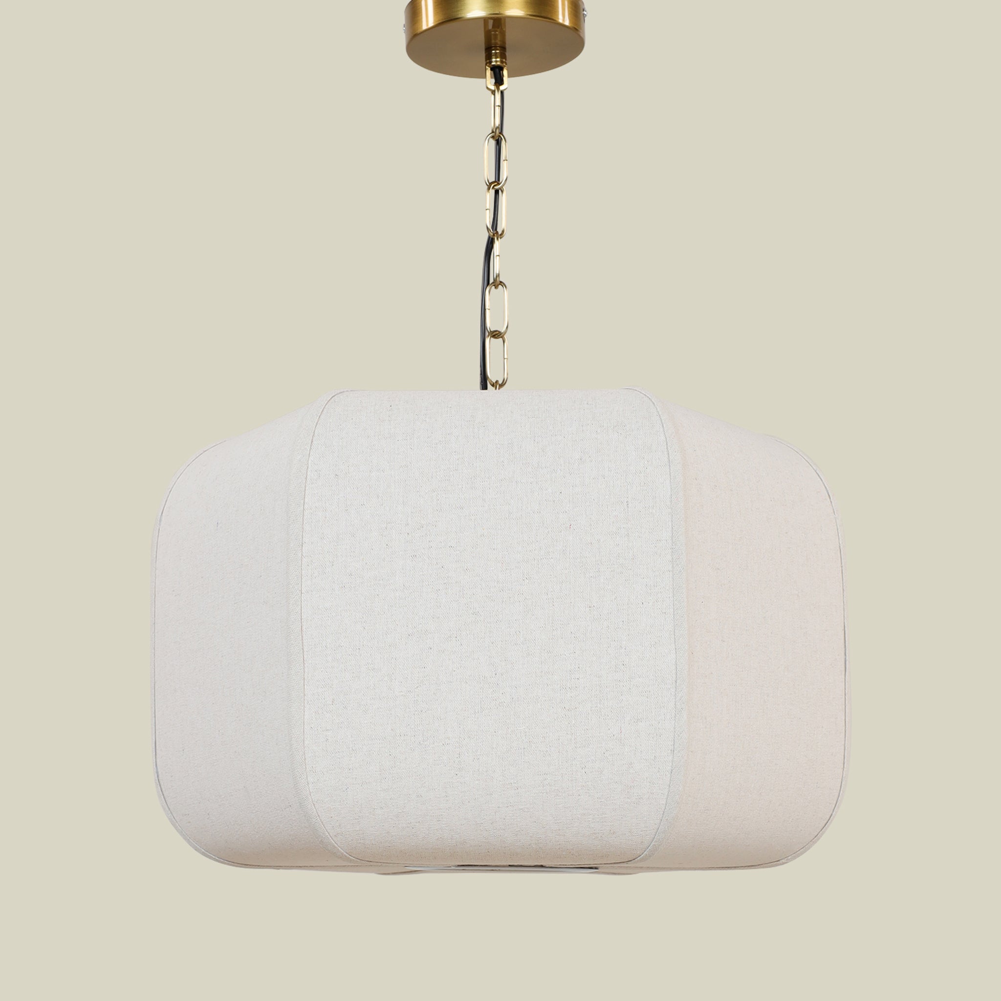 مصباح معلق من الكتان بمظهر ناعم ومريح.
