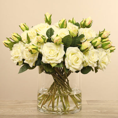 تنسيق الورود الصناعية في مزهرية زجاجية