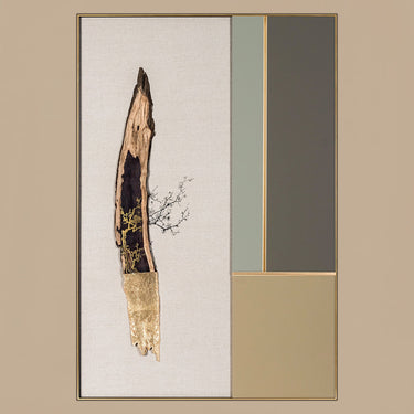 الخامة: خشب، قاعدة كتان ملونة يدويًا، حواف جلد، شرائط ألومنيوم ذهبية