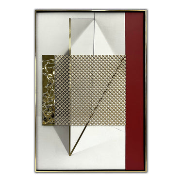 حوّل جدارًا فارغًا بهذه اللوحة التجريدية. يعتمد تصميمها العصري على الفولاذ المقاوم للصدأ المصقول باللون الشمباني، والجلد الأحمر، وقطع الكرتون، والرسم لتتناغم بسهولة مع مختلف أنماط الديكور. مؤطرة باللونين الأسود والذهبي لإضفاء تأثير بصري قوي، تقدم هذه القطعة الفنية الأنيقة طريقة بسيطة ومميزة لتجديد أي مساحة.