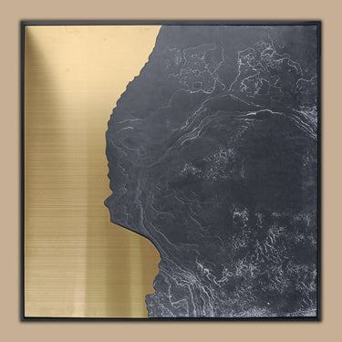 مؤطرة باللون الأسود لتأثير بصري أقوى، تعرض هذه اللوحة مزيجًا من التيتانيوم المطفي الذهبي، الفولاذ المقاوم للصدأ، ولوحة المواد. لوحة جذابة وملموسة تجمع بين التجريب والإبداع، مما يجعلها مثالية لتكون محور اهتمام بارز في أي غرفة.