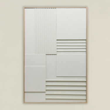 الإطار الخشبي الأنيق يكمل العمل الفني، مبرزًا التوازن بين التكوين البصري وسكنه الراقي.