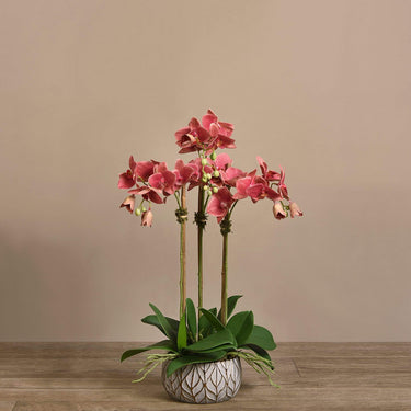 أضف حياة طويلة الأمد إلى منزلك مع هذه الأوركيد الجميلة. مصنوعة يدويًا من قبل بائعي الزهور الخبراء بتقنية اللمس الحقيقي ، تبدو هذه الأوركيد وكأنها نابضة بالحياة تمامًا. يتناسب وعاءهم الرمادي الأنيق المزين بأوراق الشجر مع أي ديكور. الترتيب حجم المزهرية الحجم الارتفاع الارتفاع القطر صغير 62 سم / 24.4 بوصة 9.5 سم / 3.7 بوصة 18 سم / 7.1 بوصة كبير 71 سم / 28 بوصة 12 سم / 4.7 بوصة 22 سم / 8.7 بوصة