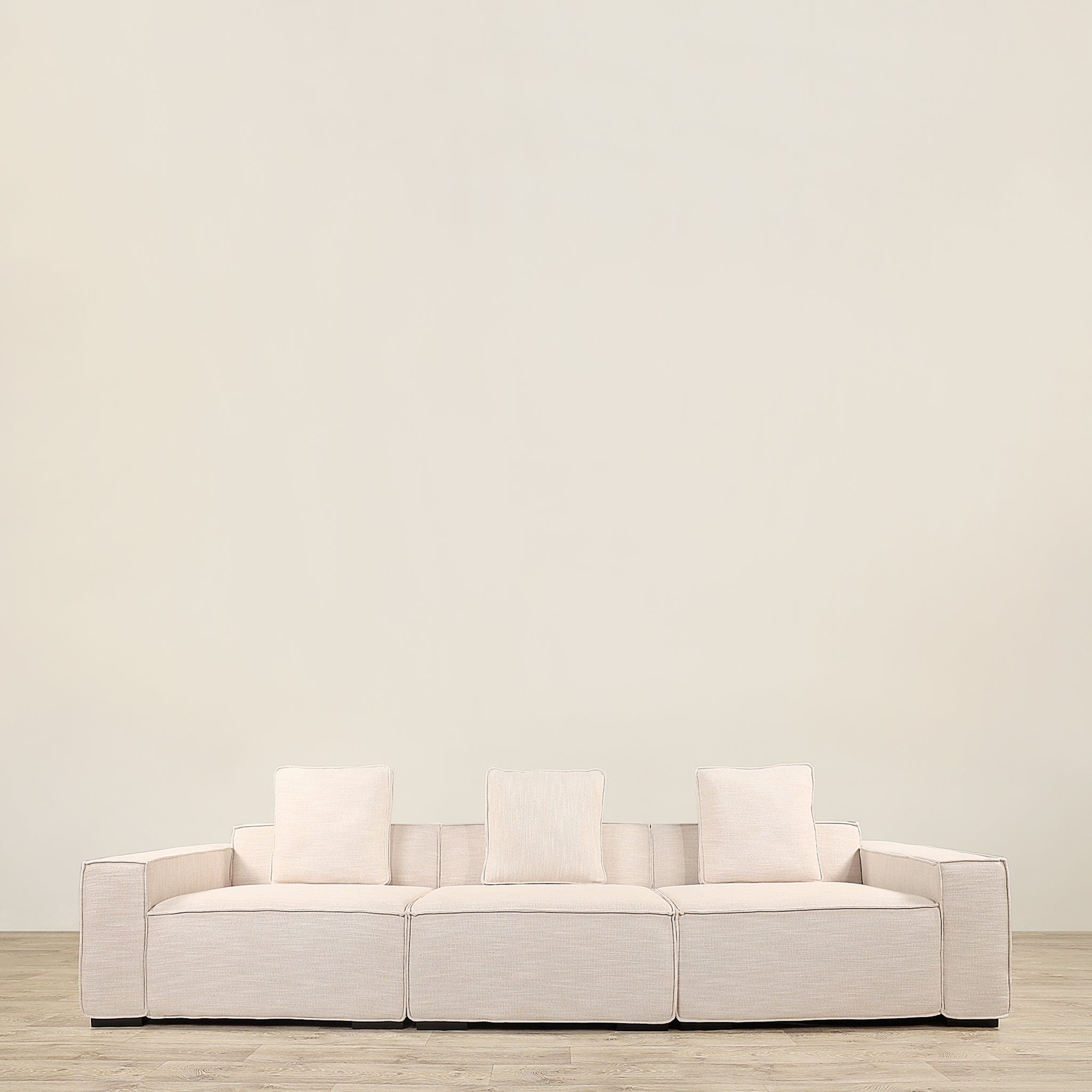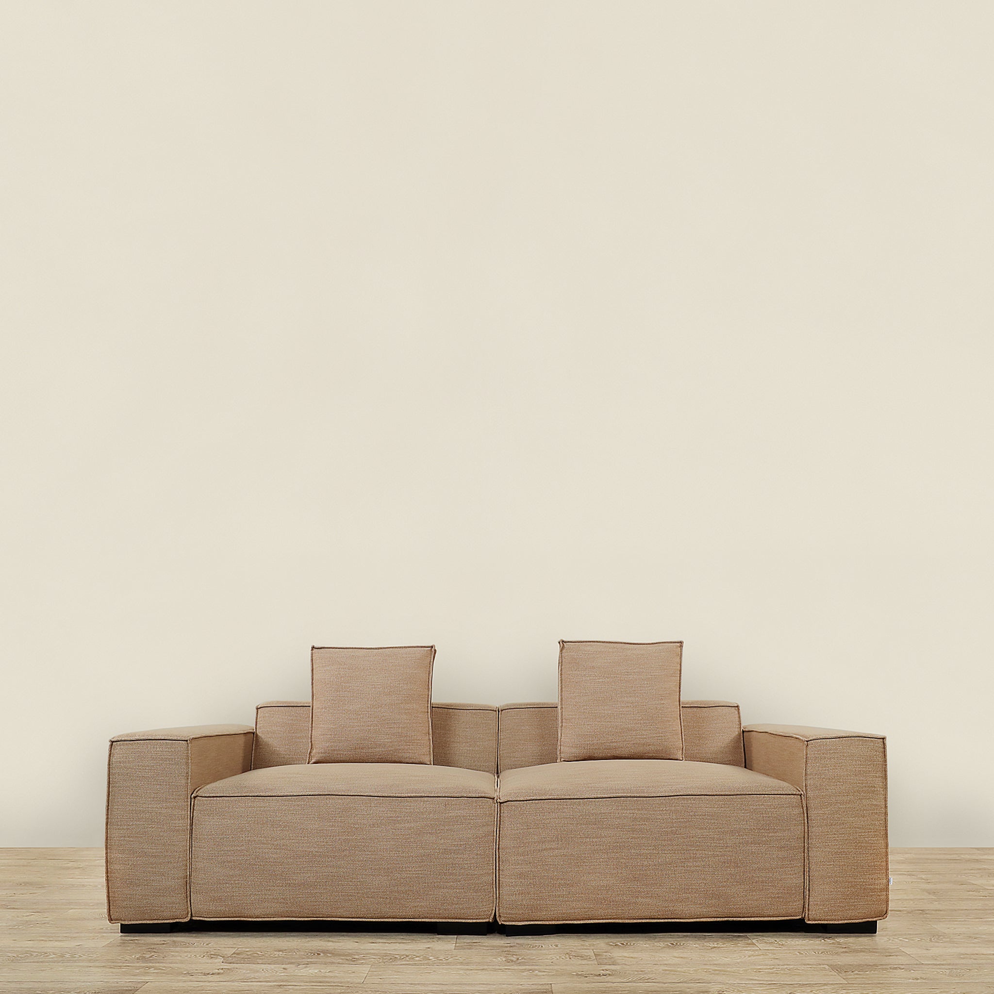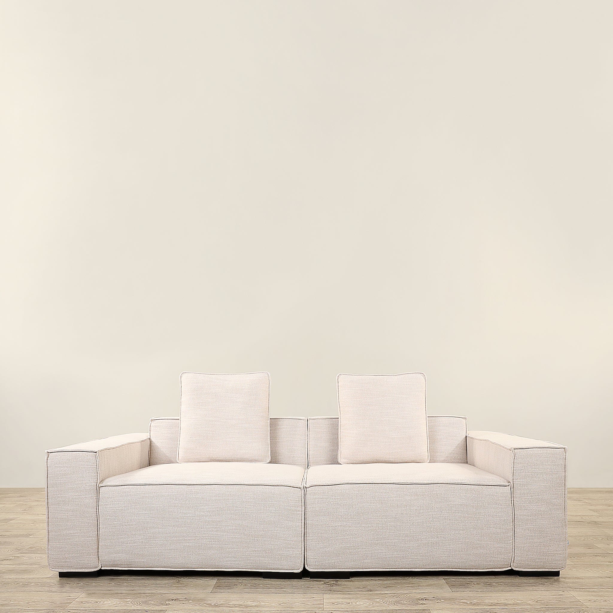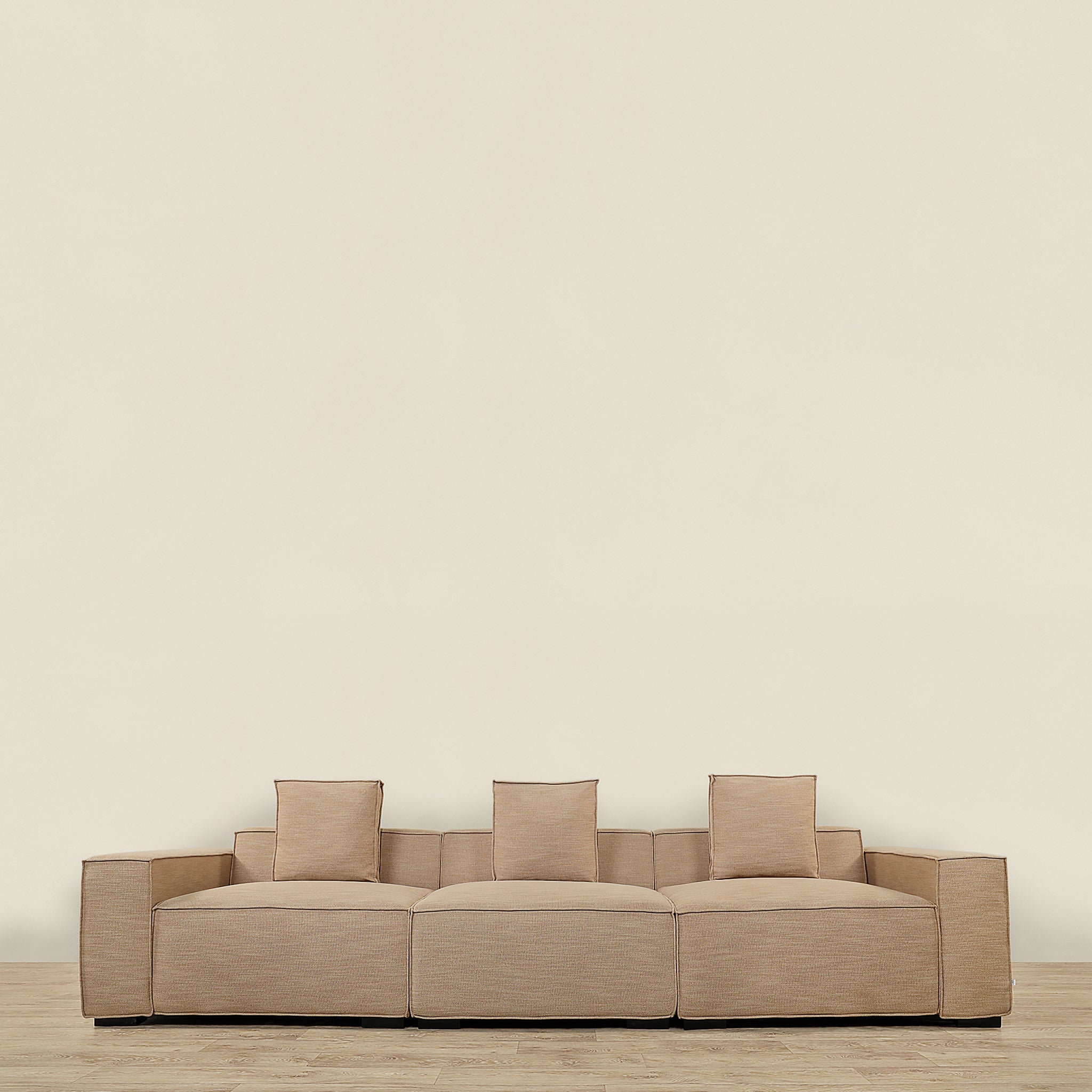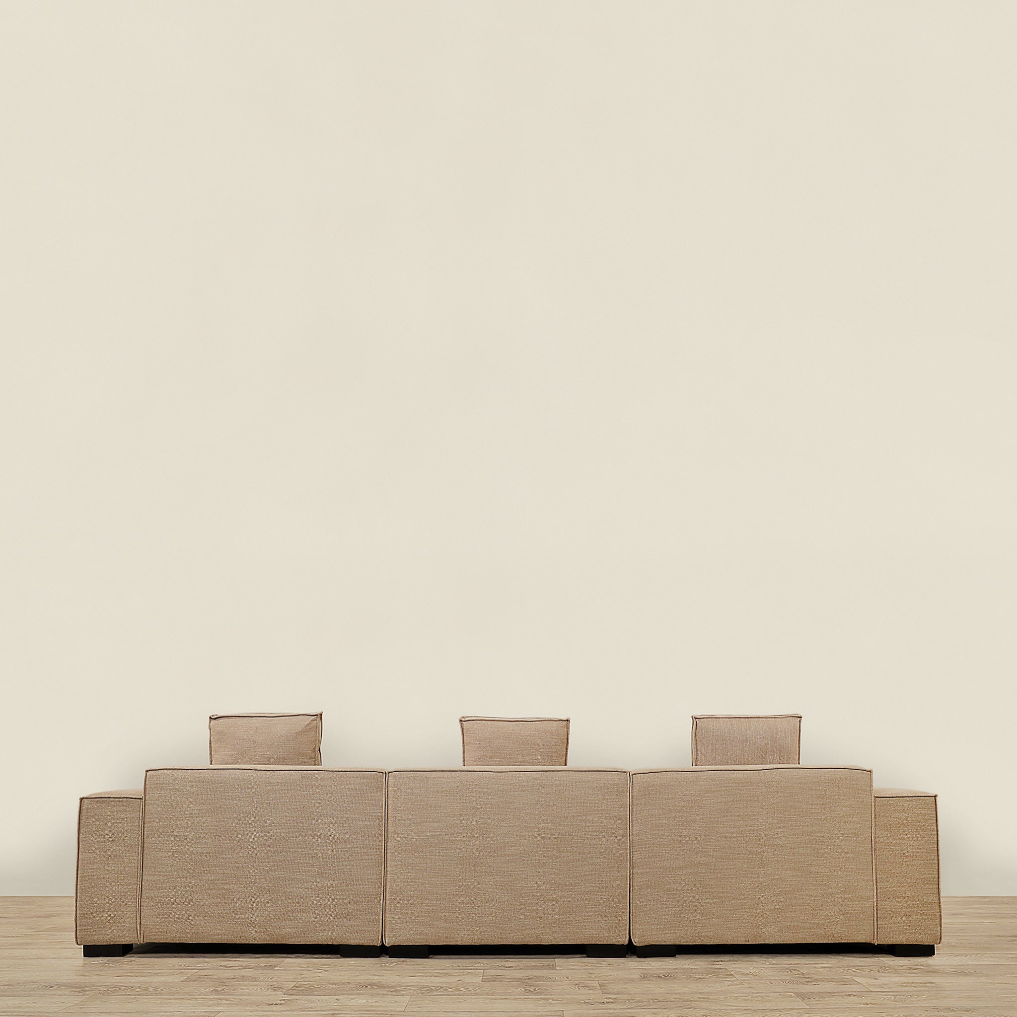 تم تصنيع هذا الحل المتطور للجلوس باستخدام قماش الكتان الفاخر بدرجة اللون البيج متعددة الاستخدامات، ويوفر أناقة خالدة وراحة استثنائية.