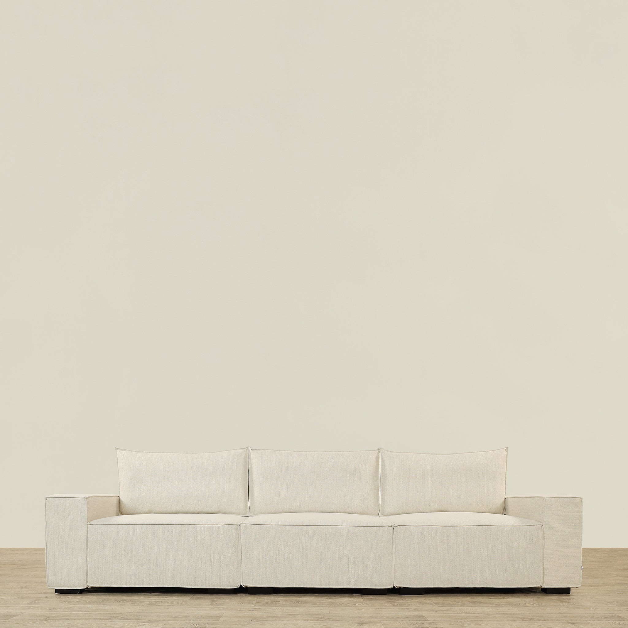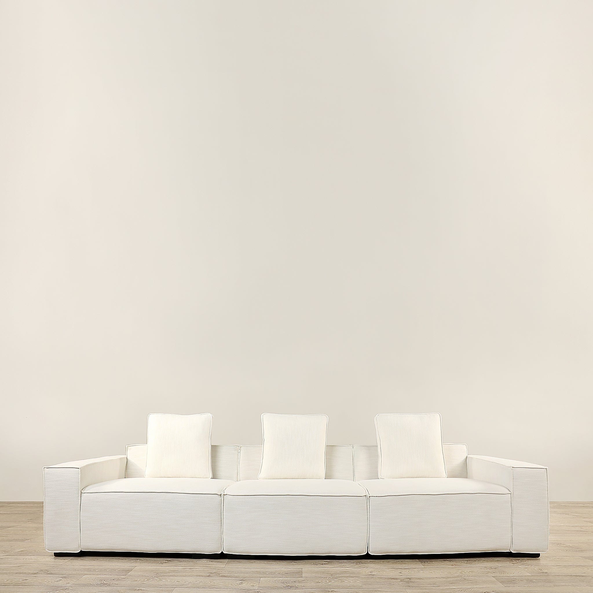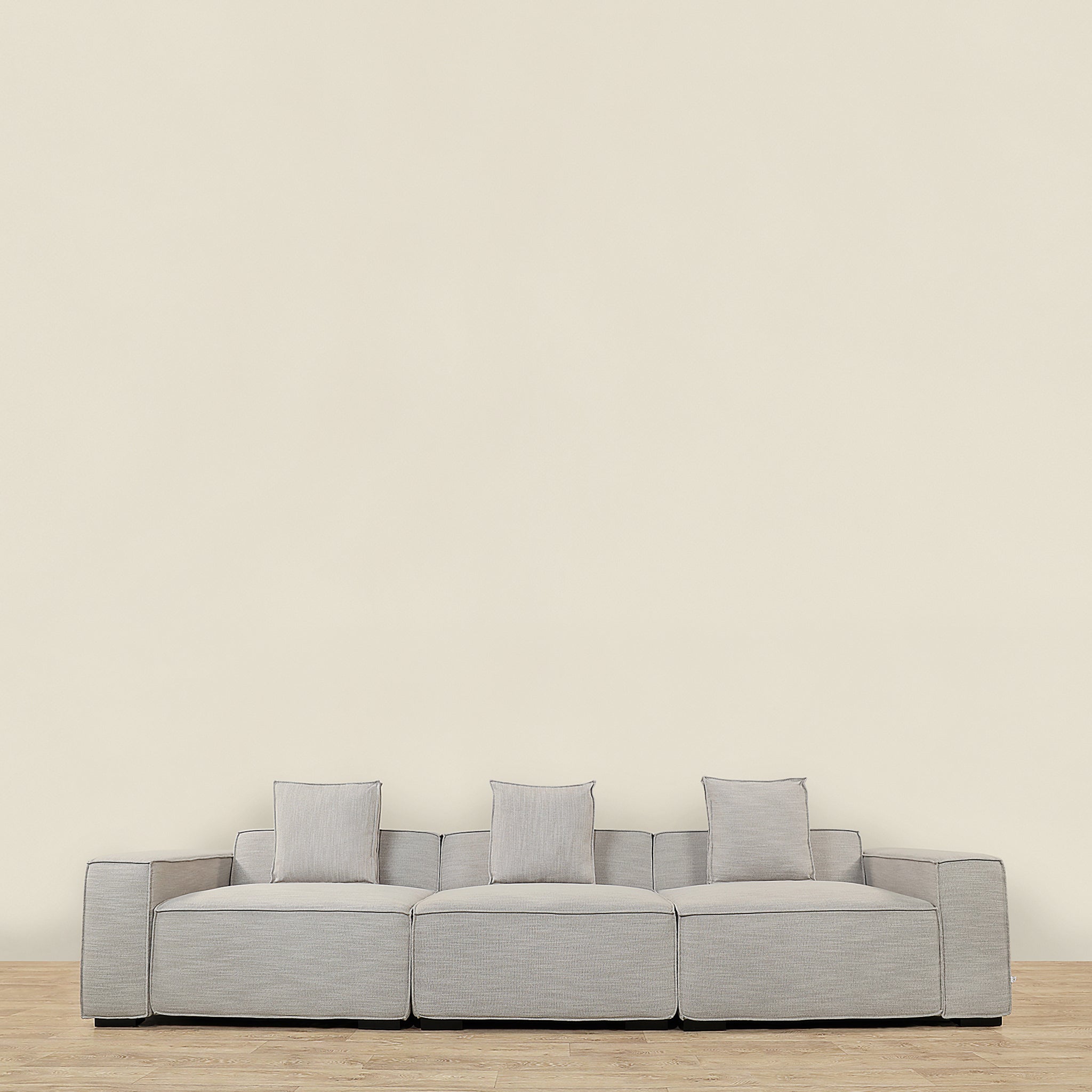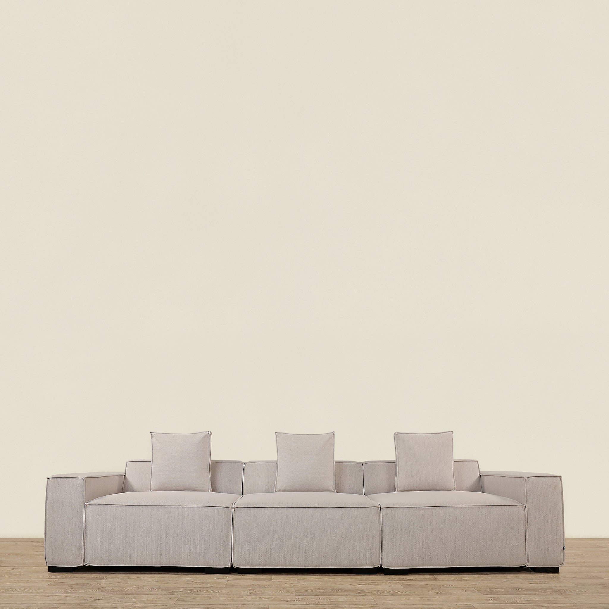 تم تصنيع هذا الحل المتطور للجلوس باستخدام قماش الكتان الفاخر بدرجة اللون البيج متعددة الاستخدامات، ويوفر أناقة خالدة وراحة استثنائية.