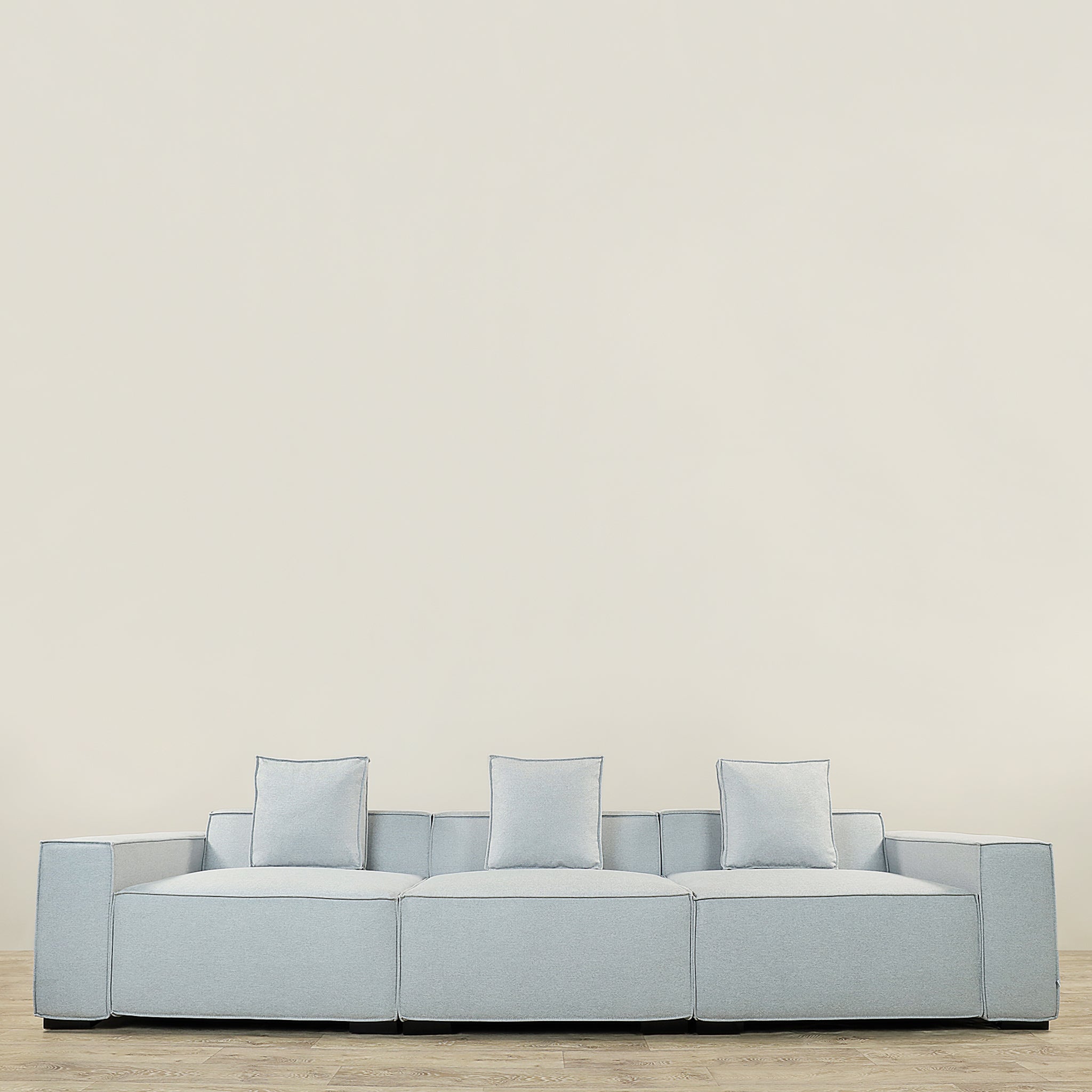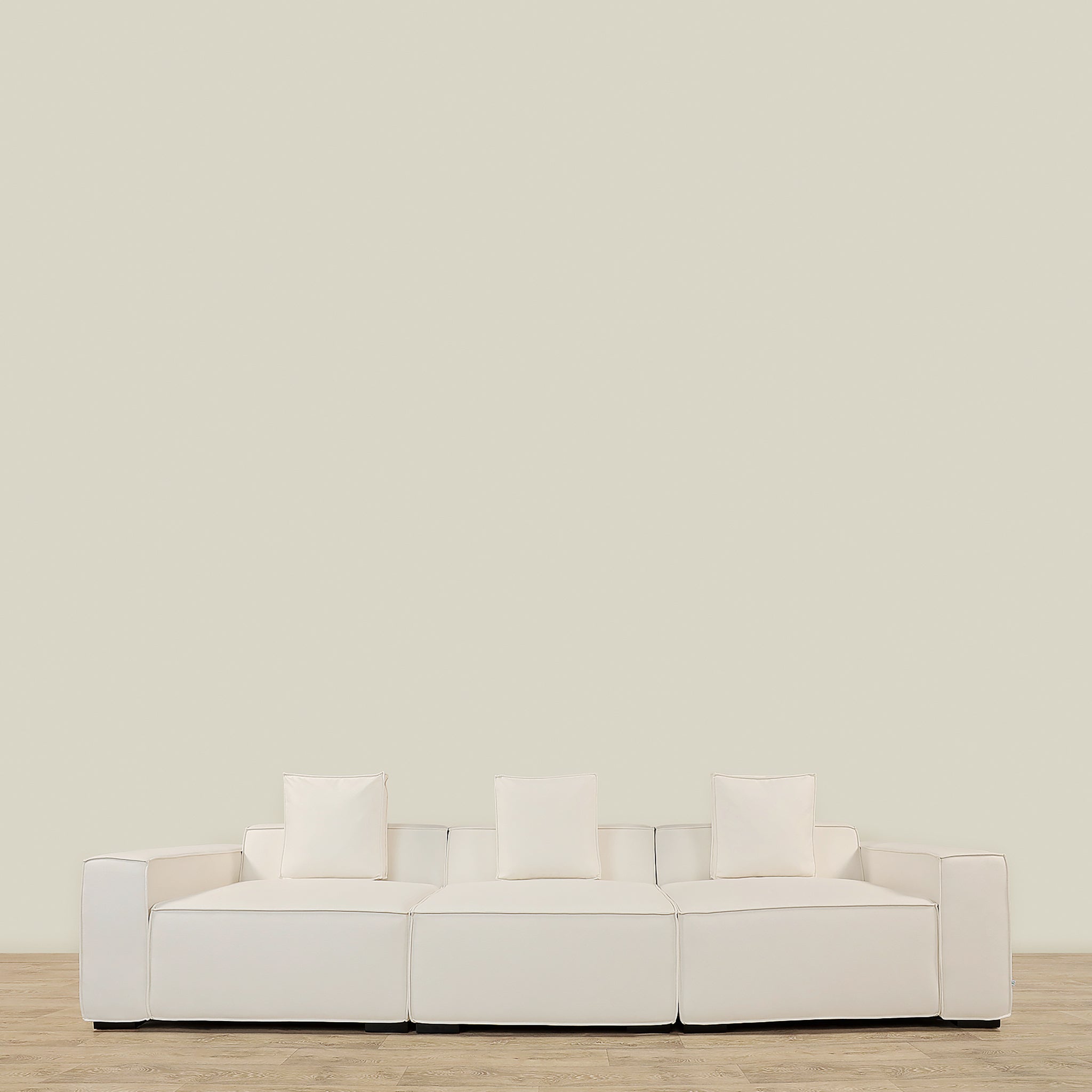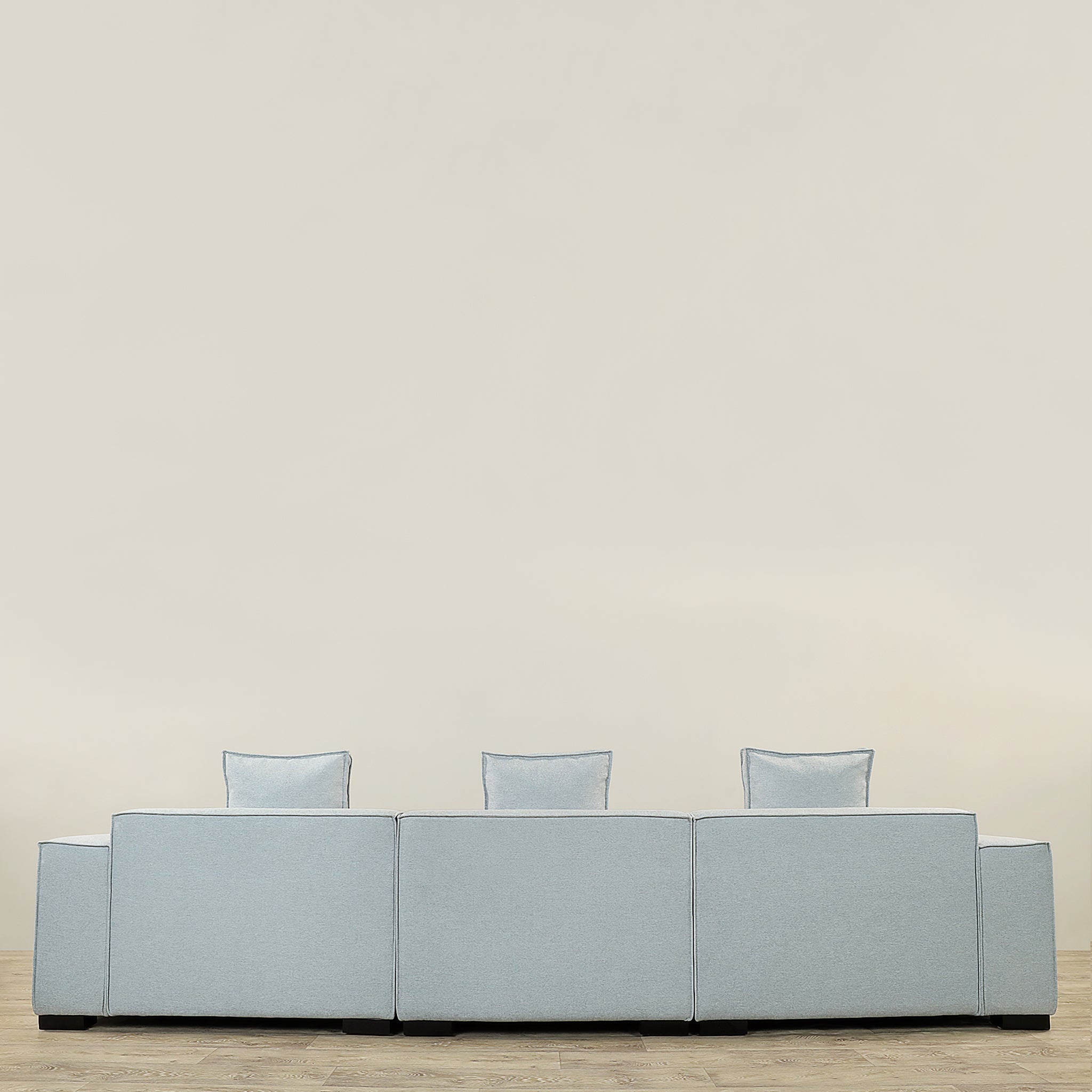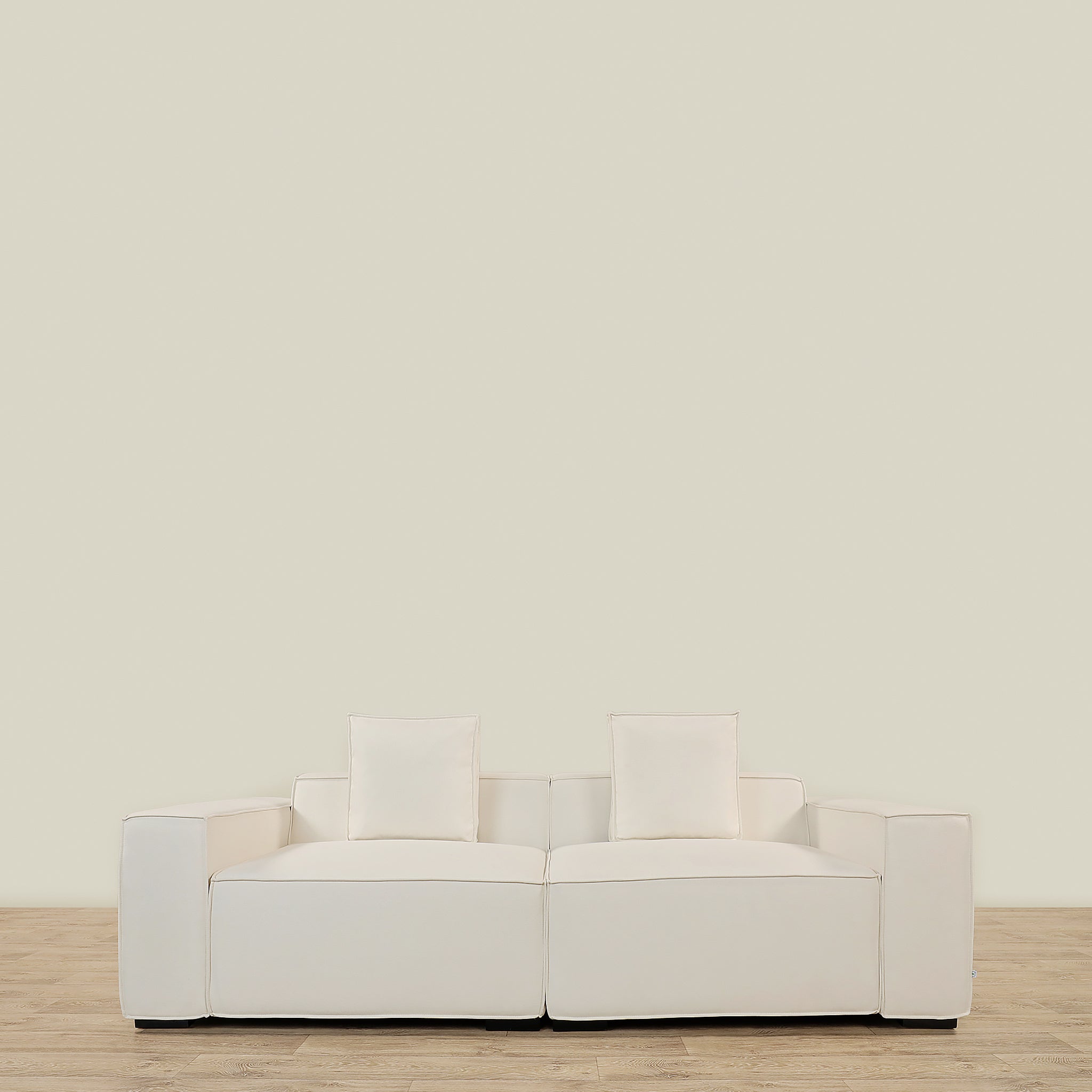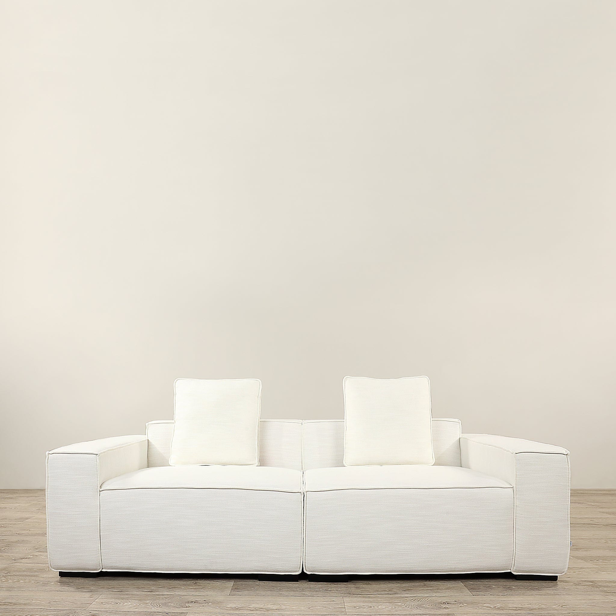 تم تصنيع هذا الحل المتطور للجلوس باستخدام قماش الكتان الفاخر بدرجة اللون البيج متعددة الاستخدامات، ويوفر أناقة خالدة وراحة استثنائية.