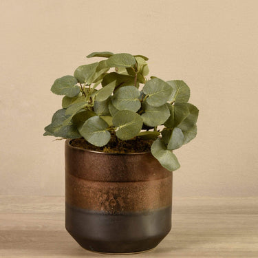 This artificial eucalyptus plant is sure to add life and tranquility to any living space. Its green leaves feel astonishingly real to the touch. Its two-toned grey and copper pot works with any decor.