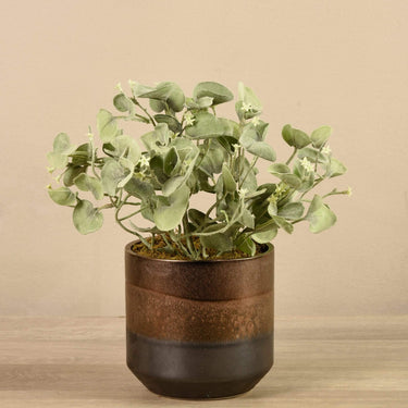 This artificial silver falls plant makes a beautiful addition to any bookshelf or coffee table. Its pale green leaves and dainty flower buds look and feel remarkably real. They really stand out against its two-toned grey and copper pot.
