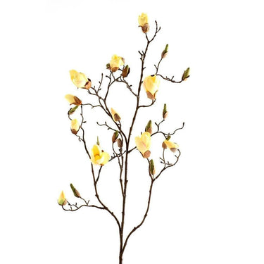 Distinguished by its glossy green leaves, the Magnolia has large petaled blooms perfect for a botanical accent in any interior. Pair this lovely artificial Magnolia Stem with other flowers and greenery or fill a vase with its extravagant blooms for a lush display. Beautifully crafted, this faux magnolia stem could also be added to a wreath or bouquet.