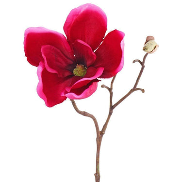 Distinguished by its glossy green leaves, the Magnolia has large petaled blooms perfect for a botanical accent in any interior. Pair this lovely artificial Magnolia Stem with other flowers and greenery or fill a vase with its extravagant blooms for a lush display. Beautifully crafted, this faux magnolia stem could also be added to a wreath or bouquet.