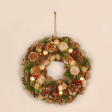 'Tis the season for hanging beautiful wreaths like this one on your front door. Featuring faux pinecones, pearls, and cranberries, this sparkling brown wreath is sure to invite the holiday spirit.