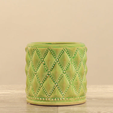 Elevate the appearance of your surroundings using a modern ceramic vase. Ideal for showcasing faux flowers, this vase also possesses the capability to stand alone, adding dimension and interest to any environment. Meticulously fashioned from ceramic, and featuring a contemporary diamond pattern, this container offers a versatile finish that complements various styles.