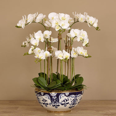 Transform your space with the beauty of our Artificial Orchid Arrangement. Every meticulously detailed orchid bloom and lush foliage mirrors the natural charm of real orchids. Nestled in an elegant blue and white planter, this artificial orchid is a low-maintenance yet high-impact addition to your decor.