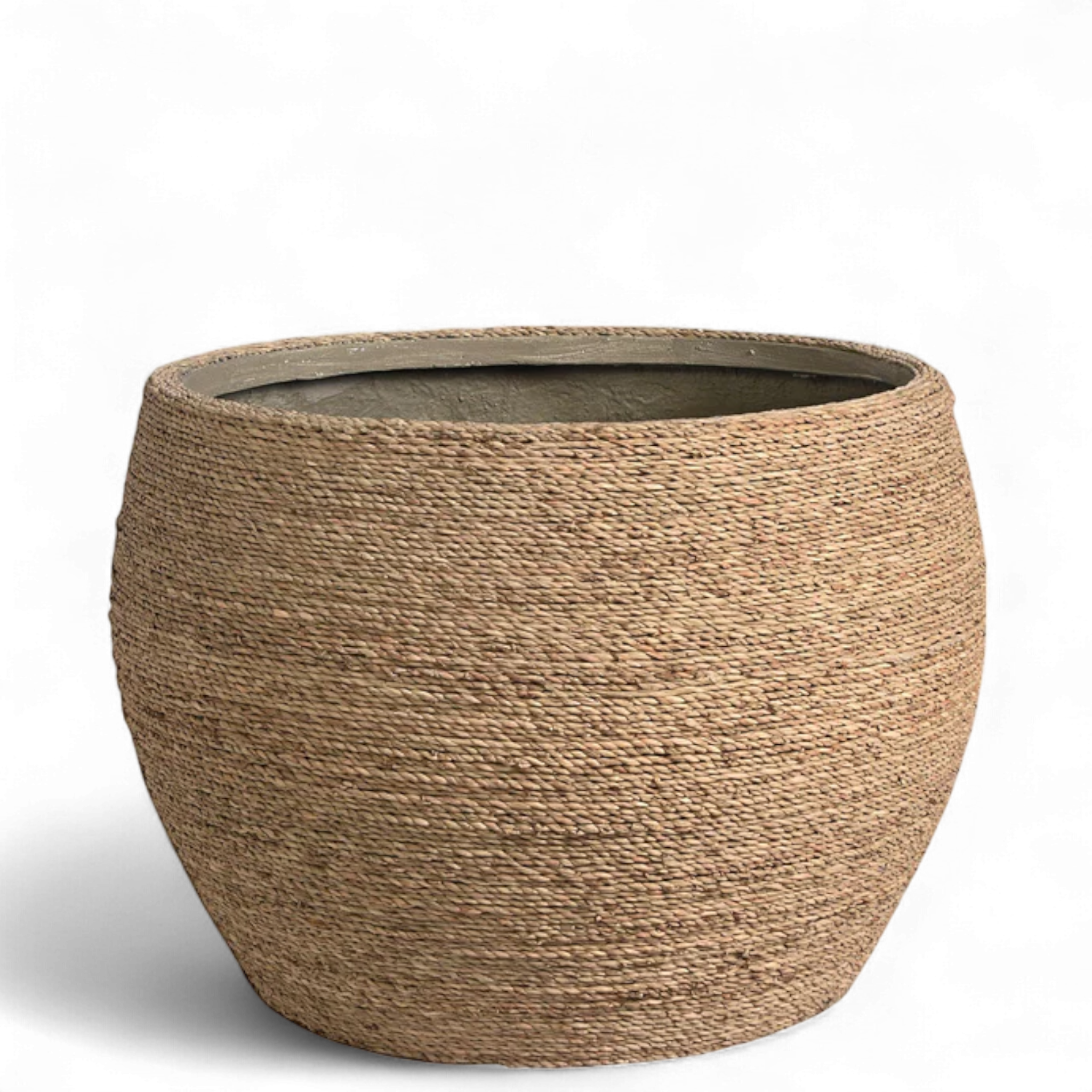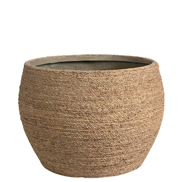 Constructed from natural grass rope with a solid cement interior, this pot is perfect to add a touch of greenery to your home. These pots can also be used as a storage basket option.