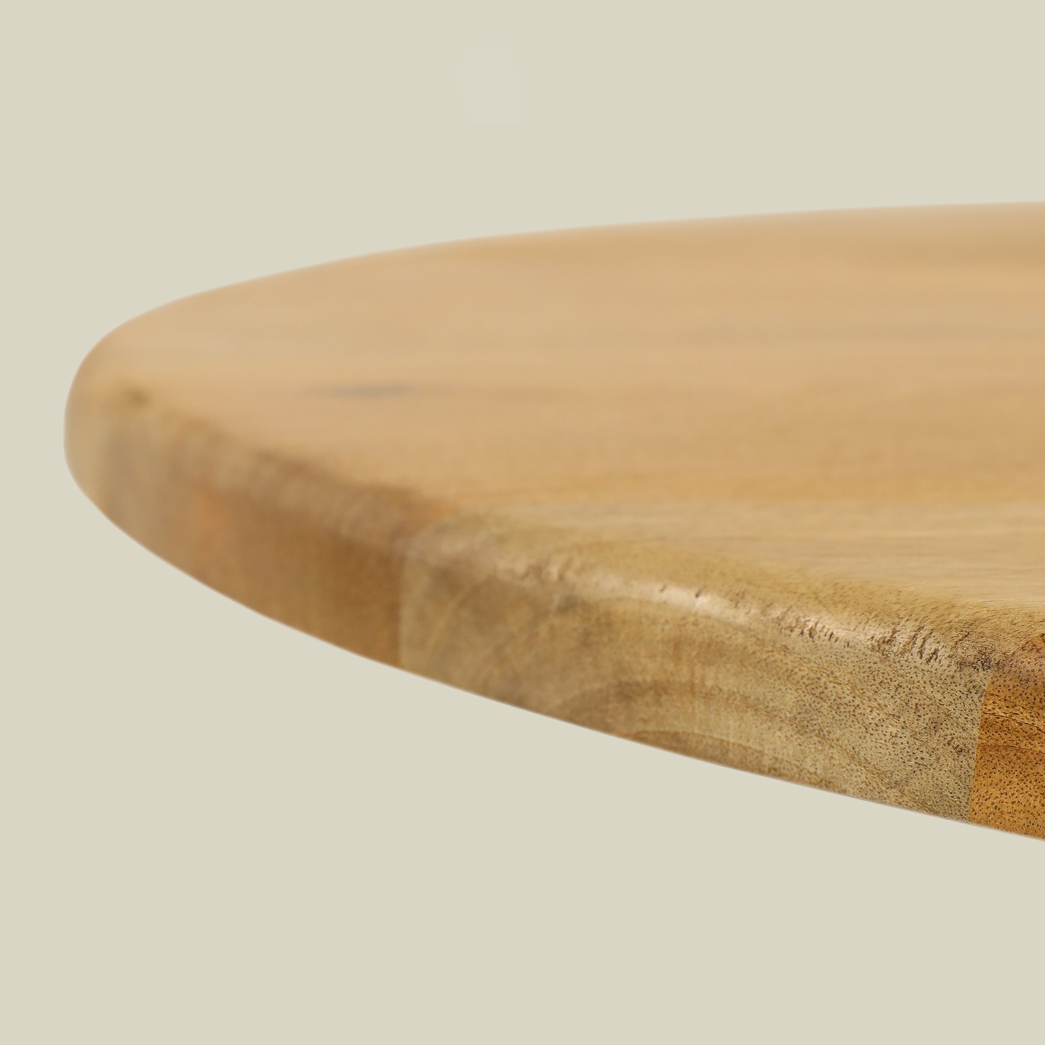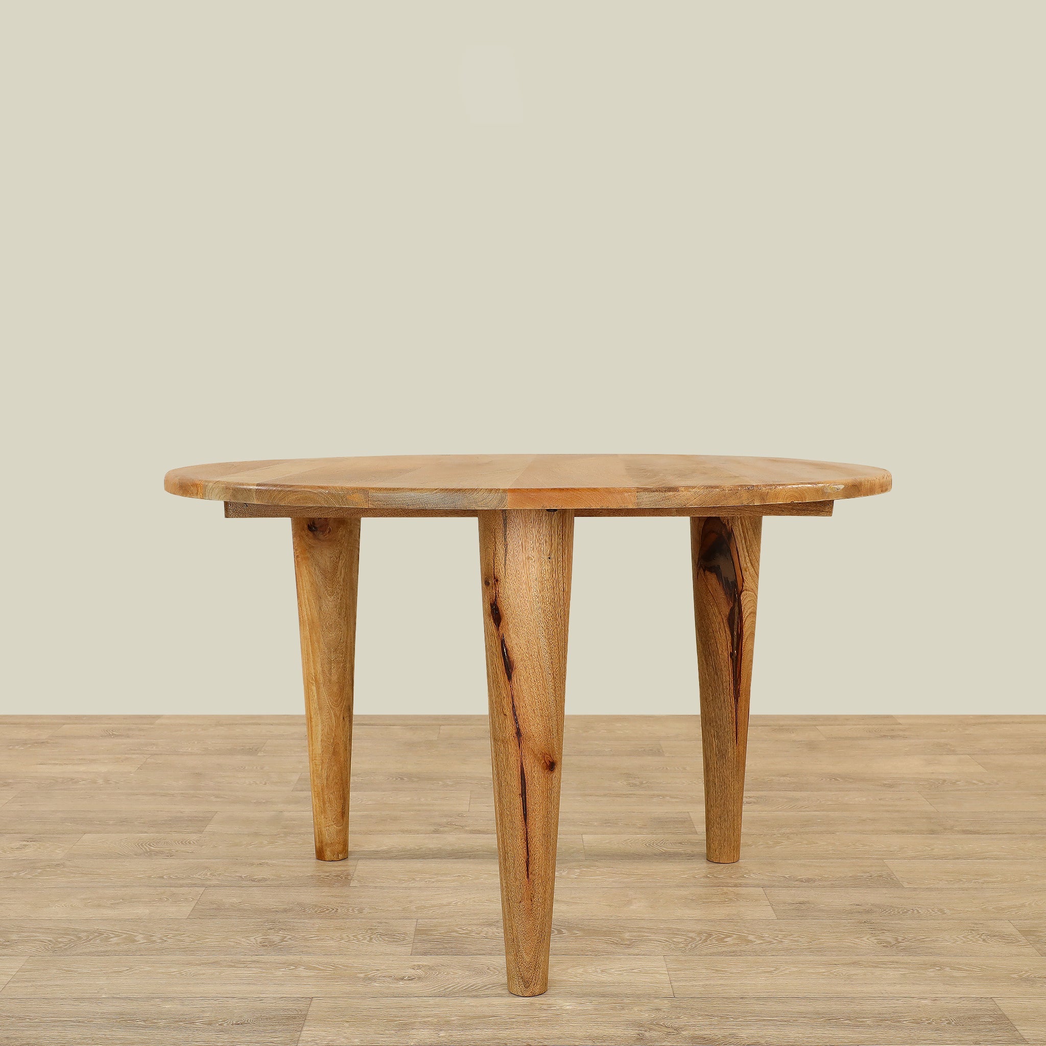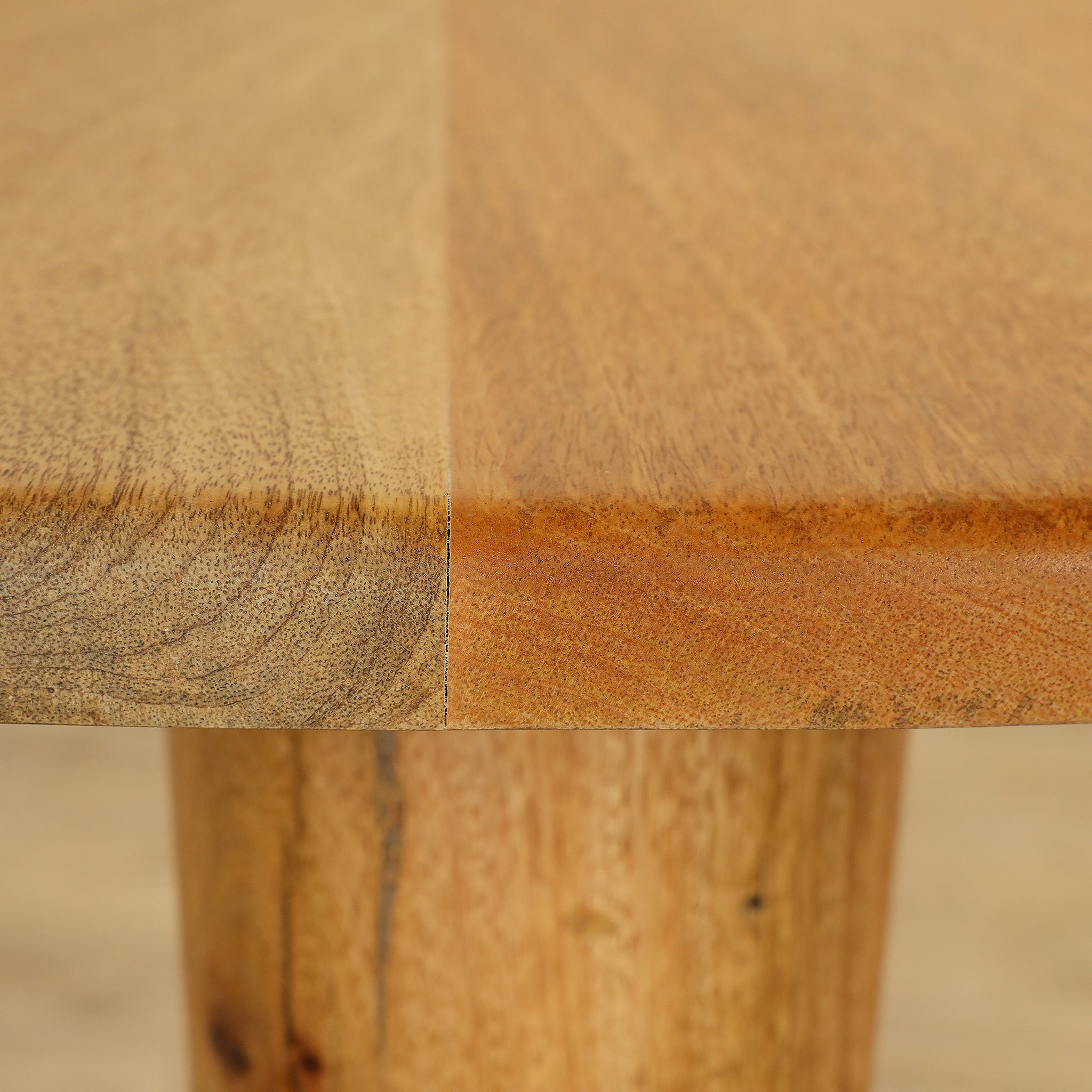 Transform your dining space with this exquisite wooden table, showcasing a gracefully rounded top that fosters meaningful connections around the meal.