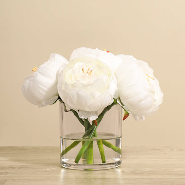تشكيلة فاوانيا صناعية في مزهرية زجاجية