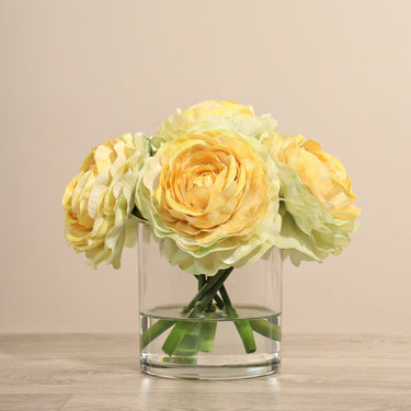 تشكيلة حوذان صناعي في مزهرية زجاجية