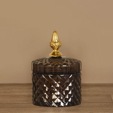 تخيل هذا الصندوق الزجاجي الأنيق في غرفة الضيوف أو الصالة لحفظ الحلي والأشياء الصغيرة. يتميز هذا الصندوق الدائري بتصميمه الزجاجي الجميل الذي يعكس الضوء، وغطائه بمقبض ذهبي أنيق لسهولة الوصول إلى محتوياته.