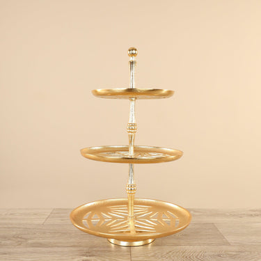 استخدم حامل الكيك الأنيق هذا في منزلك لتقديم الحلويات والمعجنات المتنوعة لعائلتك وأصدقائك. يتميز هذا الحامل الجميل بتشطيب معدني لامع، ويتألف من ثلاث طبقات لتوفير مساحة واسعة للتقديم أو العرض. استخدمه في المناسبات الخاصة، واللقاءات غير الرسمية، أو كقطعة ديكور أنيقة تُضفي لمسة راقية على أي نمط ديكور.