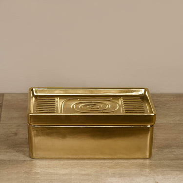 صندوق مصمم خصيصًا للحفاظ على مقتنياتك الثمينة والغالية على قلبك بمظهر يليق بها. يتميز هذا الصندوق الذهبي بنقوشه الدقيقة وهو يأتيك بغطاء قابل للإزالة لسهولة الاستخدام.