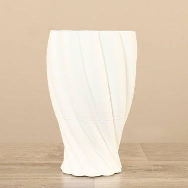 البساطة والأناقة البسيطة تضفيان على هذه المزهرية الخزفية مظهرًا عصريًا أنيقًا. مصنوعة من السيراميك، تتميز بتصميم دائري طويل ينحني ويلتوي، مما يضفي عليها مظهرًا أنيقًا وبسيطًا. حجم هذه المزهرية مناسب تمامًا للرفوف أو الطاولات.