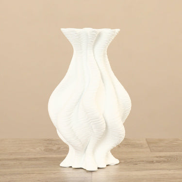 البساطة والأناقة البسيطة تضفيان على هذه المزهرية الخزفية مظهرًا عصريًا أنيقًا. مصنوعة من السيراميك، تتميز بتصميم دائري طويل ينحني ويلتوي، مما يضفي عليها مظهرًا أنيقًا وبسيطًا. حجم هذه المزهرية مناسب تمامًا للرفوف أو الطاولات.