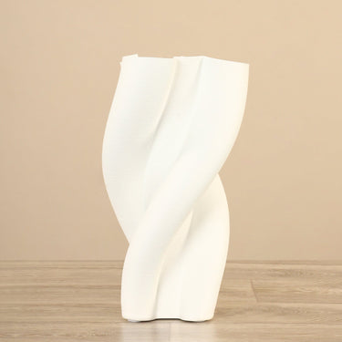 البساطة والأناقة البسيطة تضفيان على هذه المزهرية الخزفية مظهرًا عصريًا أنيقًا. مصنوعة من السيراميك، تتميز بتصميم طويل ينحني ويلتوي، مما يضفي عليها مظهرًا أنيقًا وبسيطًا. حجم هذه المزهرية مناسب تمامًا للرفوف أو الطاولات.
