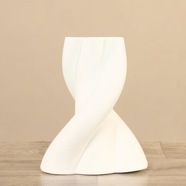 البساطة والأناقة البسيطة تضفيان على هذه المزهرية الخزفية مظهرًا عصريًا أنيقًا. مصنوعة من السيراميك، تتميز بتصميم طويل ينحني ويلتوي، مما يضفي عليها مظهرًا أنيقًا وبسيطًا. حجم هذه المزهرية مناسب تمامًا للرفوف أو الطاولات.