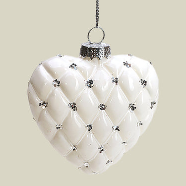 أضف لمسة ساحرة إلى ديكورات الأعياد مع هذه المجموعة من ست زينة لشجرة عيد الميلاد على شكل قلب. تتميز هذه الزينة الزجاجية الرائعة بلمسة نهائية بيضاء لامعة وتفاصيل رائعة تُضفي لمسةً من البهجة على أغصان شجرة عيد الميلاد.
