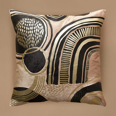 أضف لمسة عصرية إلى أي منطقة جلوس معهذه الوسادة المميزة. بها لوحة ألوانها السوداء والذهبية والوردية الباهتة، ولمسات رقائق خاري المطبوعة والذهبية ، والسحاب المغطى القوي ، والملمس المخملي تجعلها إضافة مثالية إلى أريكتك.