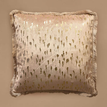 قماش الخاري مع طبعة رقائق ذهبية ودانتيل بشراشيب. مزود بسحاب قوي ومغطى.