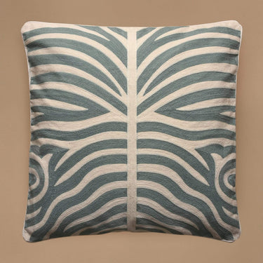 أضف لمسة من الجرائة إلى غرفة المعيشة الخاصة بك مع هذه الوسادة المربعة المزخرفة. نقشة جلد الحمار الوحشي بالأبيض ازرق ، والسحاب المغطى ، والنسيج القطني الناعم 100٪ سيشكل إضافة جميلة إلى أريكتك.
