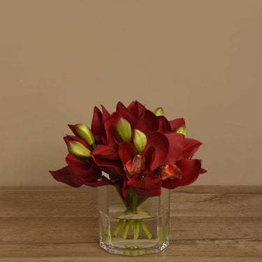 أضف باقة زهور سيمبيديوم جميلة لإطلالة طبيعية ومنعشة في أي ديكور. صُممت هذه الباقة الزهرية الاصطناعية الجميلة لتبدو تمامًا كالزهور الطبيعية، وتُعرض في مزهرية زجاجية أنيقة لعرضٍ جذاب.