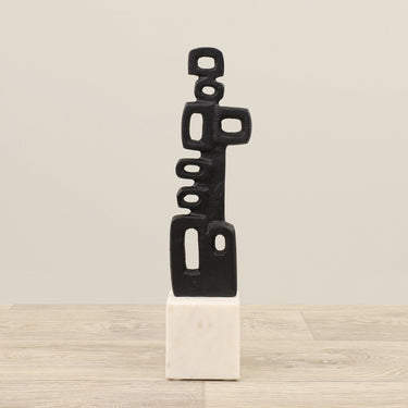 قطعة فنية حديثة ومجردة وغاية في الأناقة. تتميز بملمسها الفريد ولمسة نهائية باللون الأسود وقاعدة بيضاء.