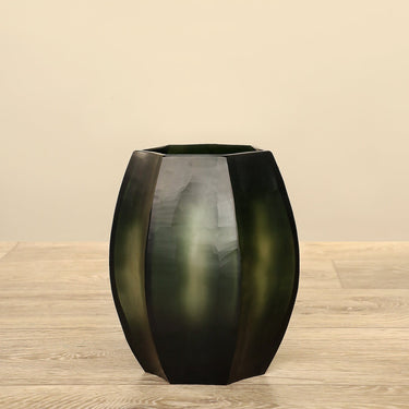 مزهرية زجاجية متينة وعصرية منفوخة يدويًا، مثالية لحمل الخضرة والأغصان والزهور. لونها الأخضر الداكن يُناسب بسهولة ألوانًا أخرى، بينما يُضفي شكلها الزاويّ وأسلوبها المنفوخ يدويًا لمسة عصرية تُضفي لمسةً منعشة.