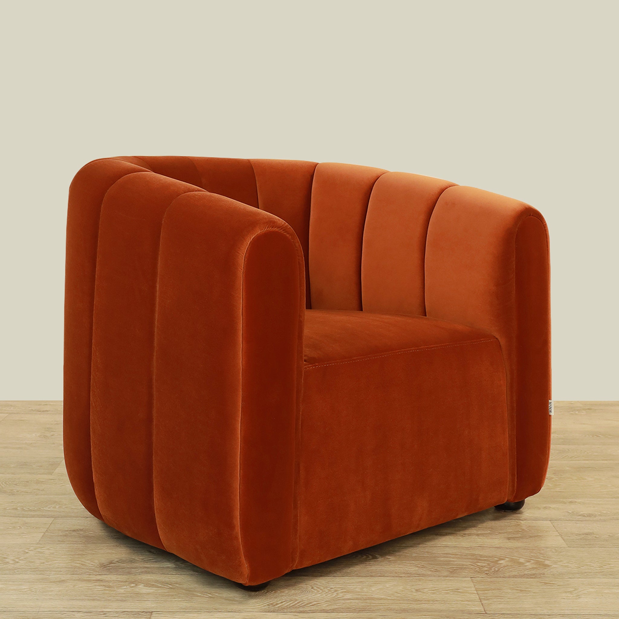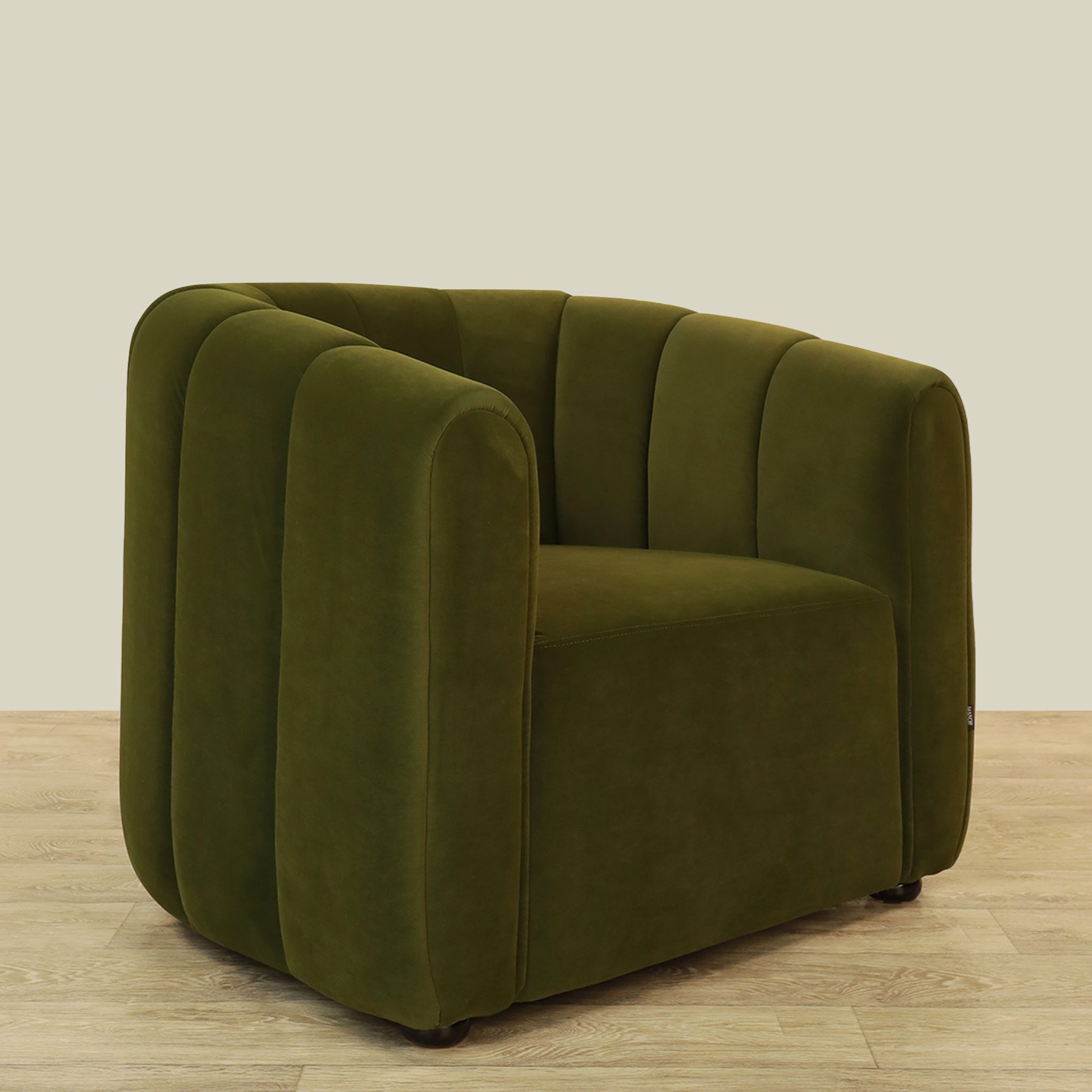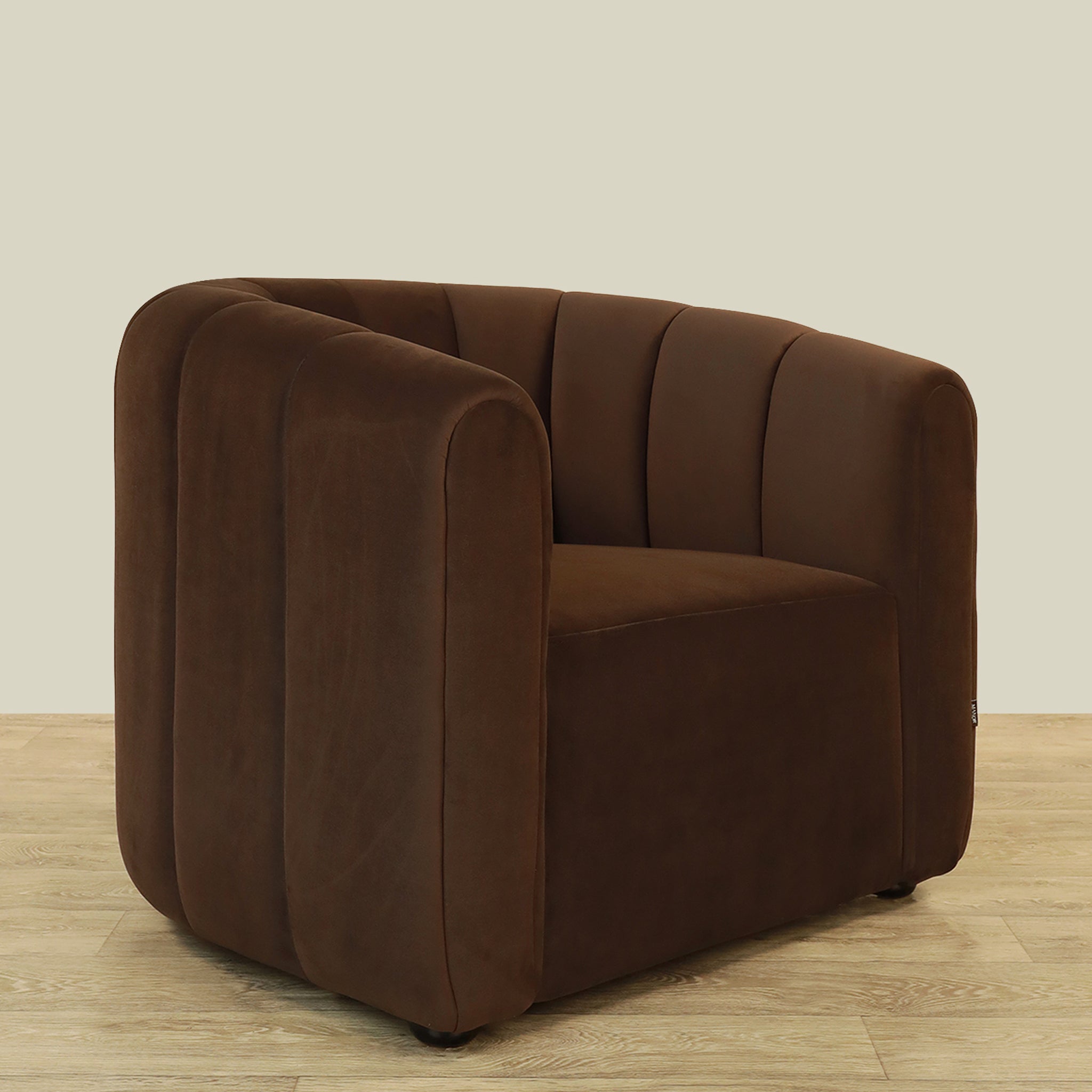يتميز هذا الكرسي بأنه مبطن بقماش ناعم، ويجمع بين المتانة والجماليات المتطورة، مما يجعله إضافة مثالية لأي مساحة معيشة حديثة.