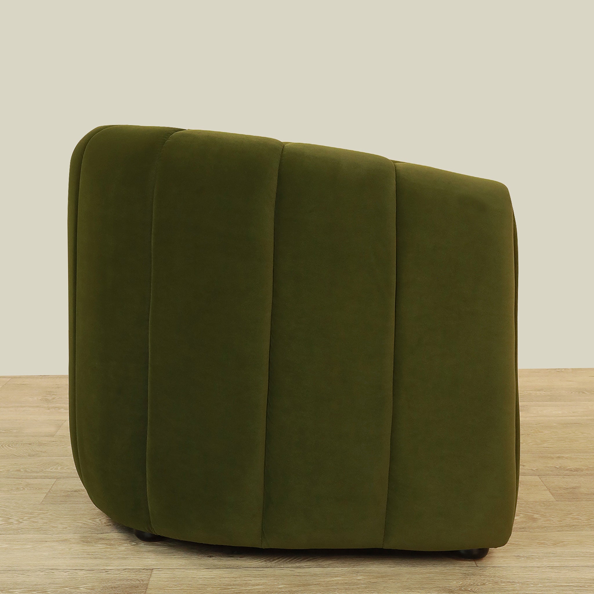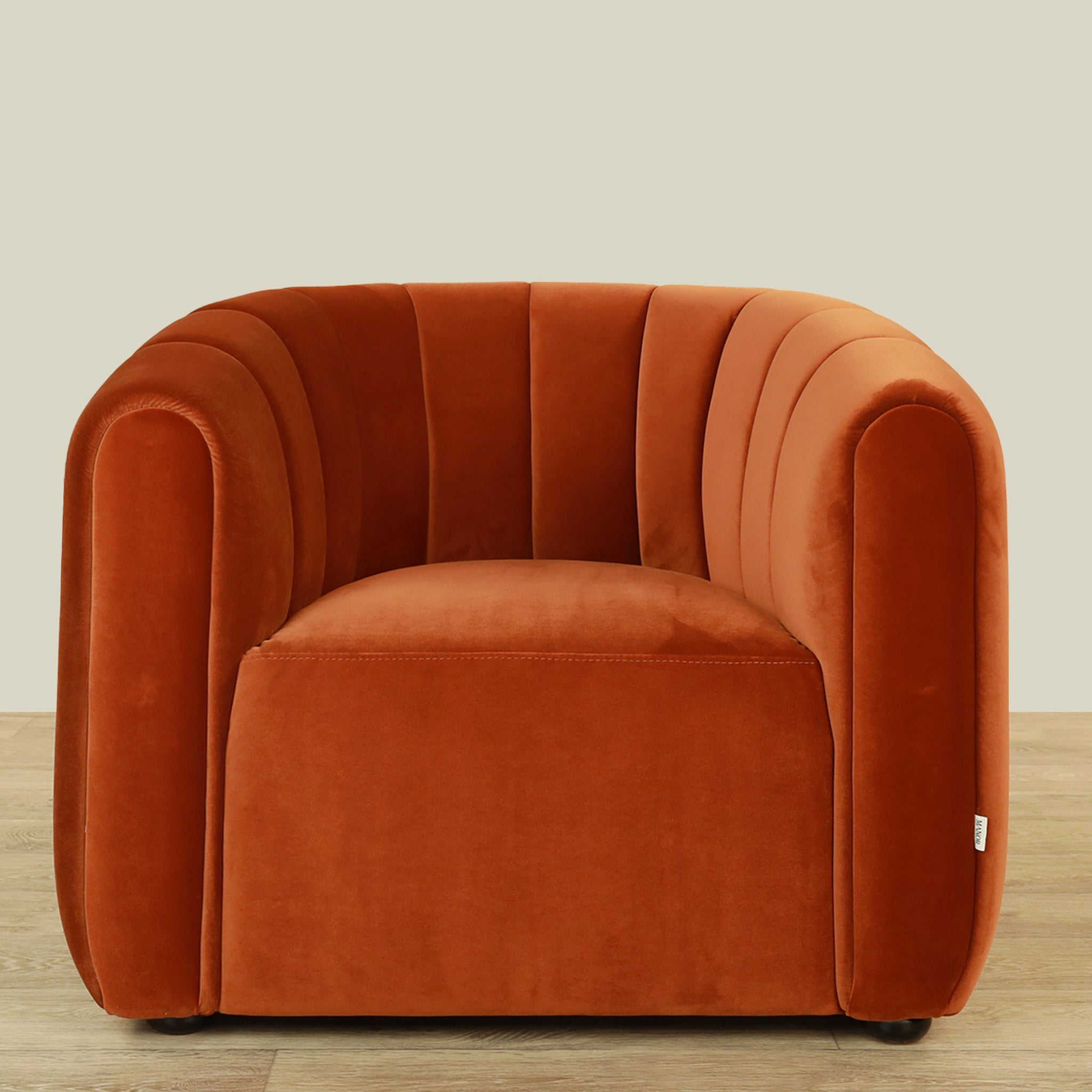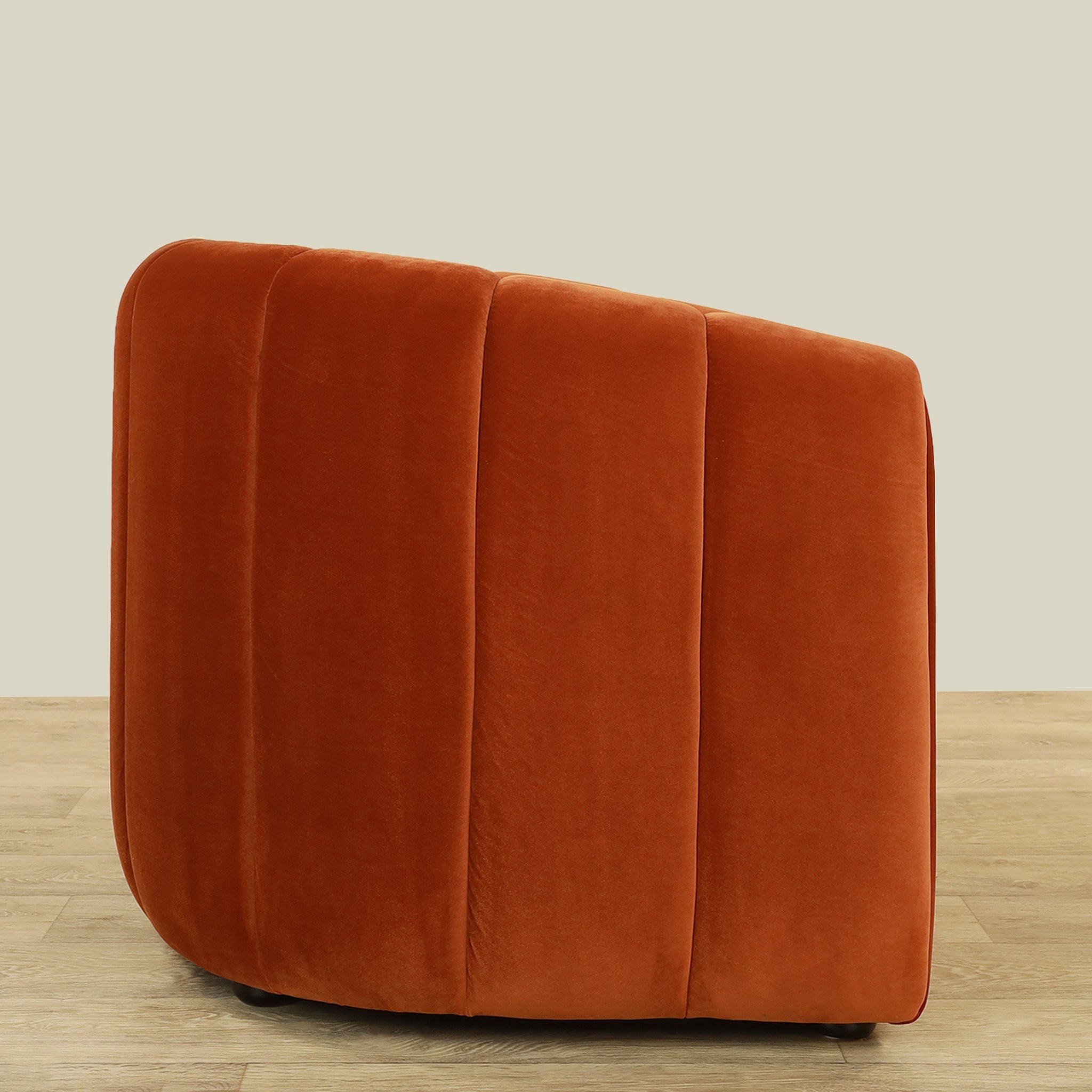 يتميز هذا الكرسي بأنه مبطن بقماش ناعم، ويجمع بين المتانة والجماليات المتطورة، مما يجعله إضافة مثالية لأي مساحة معيشة حديثة.