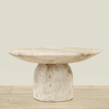 يُضفي طبق الكيك الرخامي الرائع هذا لمسةً مميزةً على عرض قطع الديكور، سواءً كانت كيكات أو فواكه أو معجنات. قاعدته المنحوتة بشكل جميل وسطحه الأملس الخالي من الزخارف، يجعله خيارًا مثاليًا للعرض.