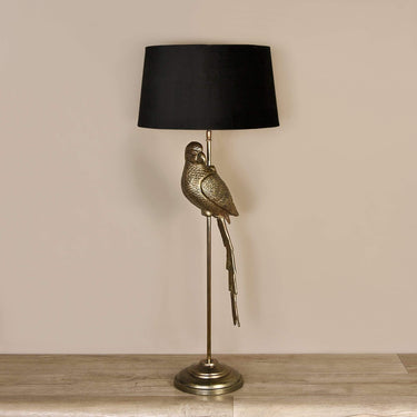 الرقي يظهر دائما في التفاصيل الصغيرة. تمتاز هذه الأباجورة بمظلة أسطوانية سوداء مع قاعدة طويلة وأنيقة منحوتة على شكل طائر.