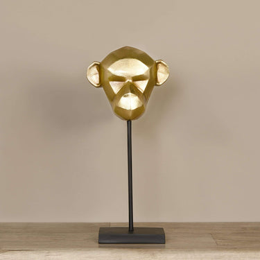 لست مضطرا لإخفاء الجانب المرح من شخصيتك حتى تُظهر ذوقك الراقي. نحن نقدم لك قطعة ديكور بديعة تتميز بتمثال رأس قرد بتصميم هندسي، مثبتة على حامل معدني متين لتظهر تفرد شخصيتك,