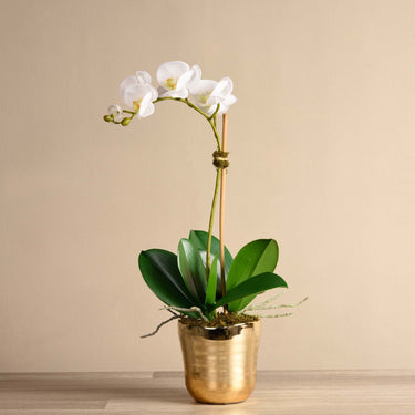 تشكيلة زهور الأوركيد الصناعية من بلومر على الطراز الملكي هي الإضافة المثالية لأي غرفة معيشة أو غرفة طعام؛ فهي تتميز بزهور الأوركيد الطويلة والمصنعة من الحرير، مجتمعة داخل مزهرية ذهبية مرتفعة، لتضفي لمسة من الرقي والفخامة على أي غرفة. يمكنك وضع هذه التشكيلة على حافة النافذة، أو فوق المدفأة، أو على طاولة الطعام، لتستمعي بمظهرها الطبيعي البديع، الذي يدوم طويلاً ولا يحتاح للكثير من العناية.