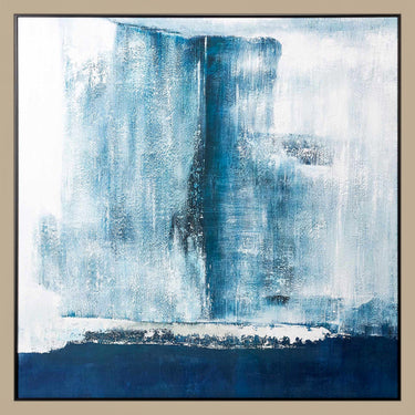 استمتع بلوحة أكريليك ساحرة على القماش، مزينة بمزيج جميل من الأزرق والأبيض مرتبة بتصميم انسيابي. تنسج هذه التحفة الفنية لوحة بصرية تملأ القماش برشاقة، مما يثير إحساسًا بالهدوء الديناميكي.